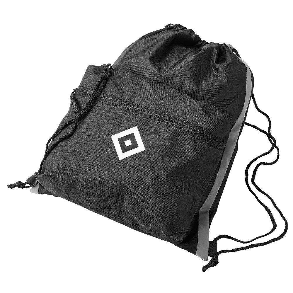 Der schwarze Sportbeutel mit HSV-Raute kommt mit einem praktischen Hauptfach und einer aufgesetzten Reißverschlusstasche. Der Kordelzugverschluss dient gleichzeitig als Schultergurt und die reflektierenden Elemente am Rand des Beutels dienen einer besseren Sichtbarkeit.