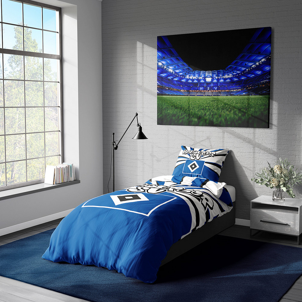 Und das am besten in der Bettwäsche „Strahlen“ vom HSV. Die blau-weiß-schwarze Bettwäsche mit „Hamburger SV“-Schriftzug und HSV-Raute auf dem Kissenbezug und Decke bringt die Farben deines Lieblingsvereins direkt in dein Schlafzimmer!