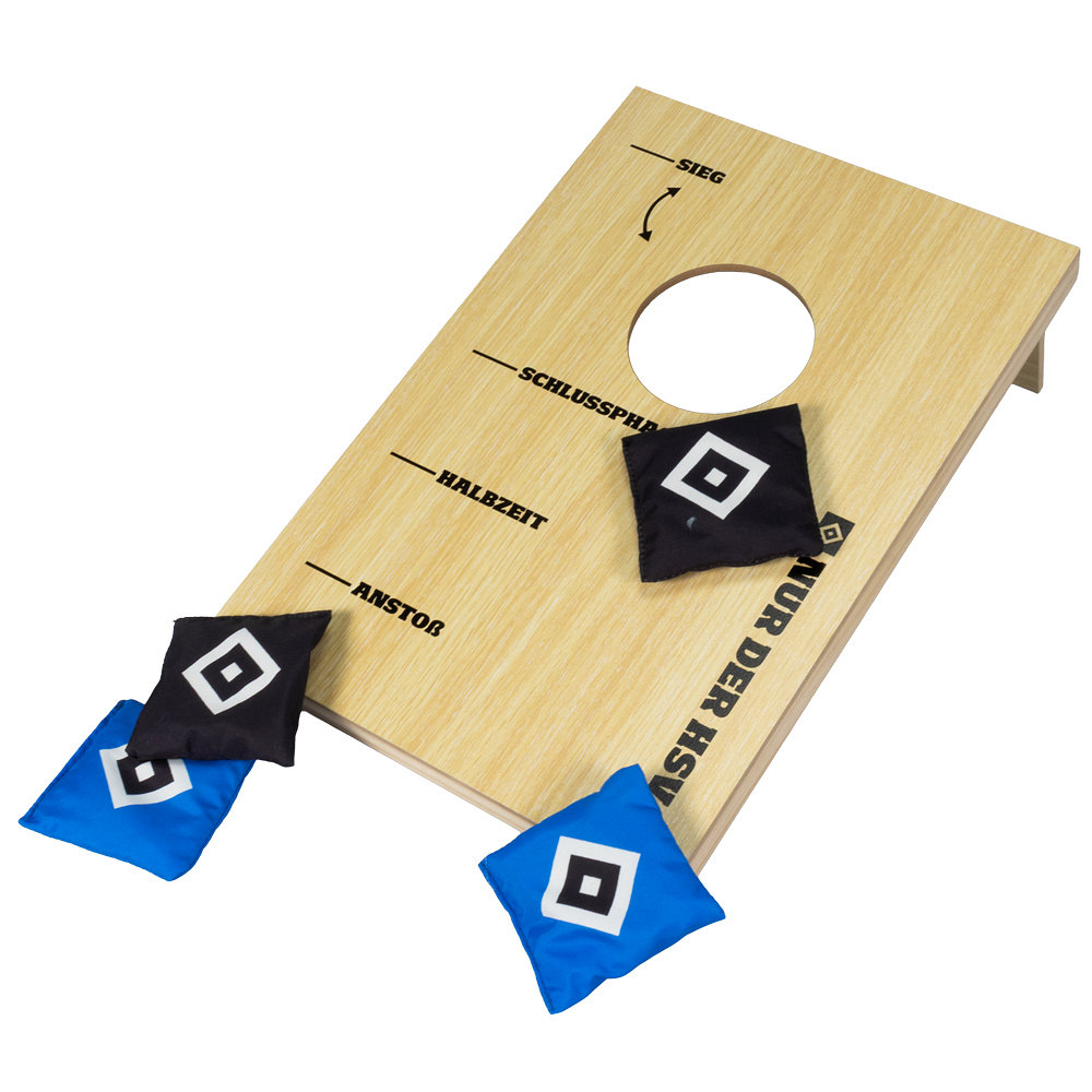 Ob im Garten, im Park oder auf der Fanparty vorm Spiel: Mit dem Cornhole Spiel sorgst du für Spaß, Spannung und sportlichen Ehrgeiz. Das Ziel dabei ist, die mit Raute bedruckten Wurfsäckchen durch das Loch zu werfen – Präzision und Geschick sind gefragt. Wer trifft, punktet – wer daneben liegt, muss nachlegen. Ein Fan-Wettkampf für Jung und Alt!
