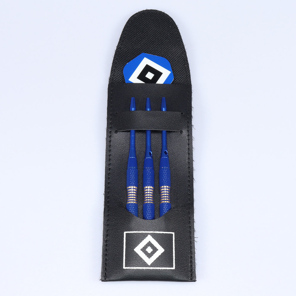 Mit diesen Dartpfeilen triffst du immer ins Blauweißschwarze und ist ein Must-have für alle Dart-Fans mit HSV-Leidenschaft! Das 3er-Set besteht aus drei Dartpfeilen, drei Flights und Aufbewahrungsbox mit HSV-Raute.