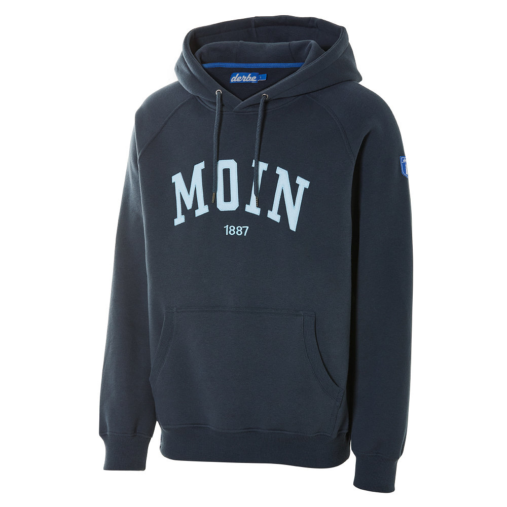 Ob für die eigenen vier Wände oder das Stadion: Der lässige Kapuzenpullover „Reku“ vom Hamburger SV mit hellblauem Moin-Schriftzug. Ergänzt wird der Hoodie von einer Kapuze mit Kordelzug und einer Kängurutasche. Am linken Arm ist das Derbe-Logo-Patch angebracht.