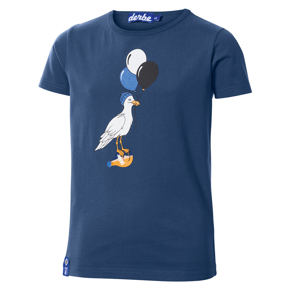 Das dunkelblaue T-Shirt Kids „Ballonmöwe“ vom HSV mit großem Möwe-Print mit blau-weiß-schwarzen Luftballons auf der Vorderseite macht sofort jedem klar, für welchen Verein dein Herz schlägt. Egal ob im Stadion, auf dem Spielplatz oder zu Hause - dieses Kinder T-Shirt vom HSV ist der perfekte Begleiter für junge Fans, die ihre Verbundenheit zu ihrem Team zeigen möchten.
