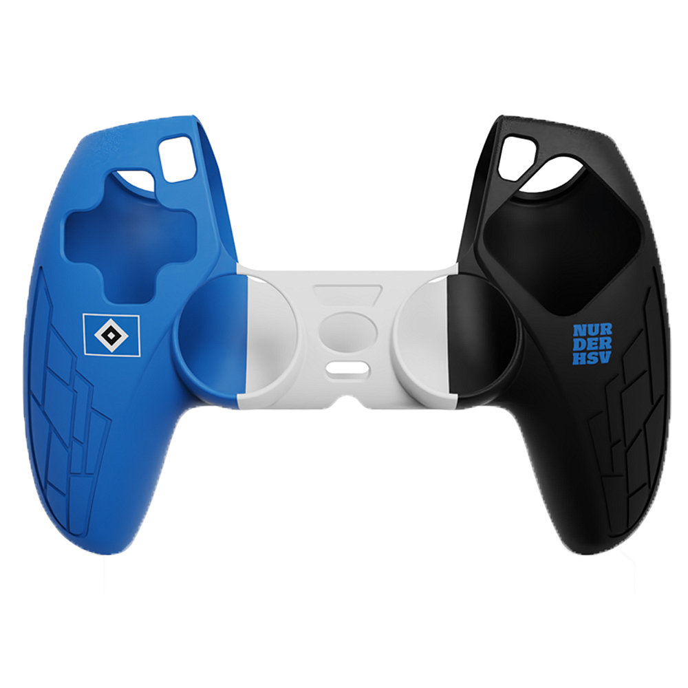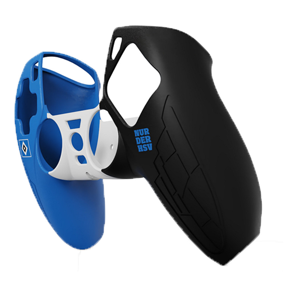 Mit der Controllerhülle für deinen PS5-Controller kannst du deine Lieblingsspiele auf der Konsole in neuem Glanz erleben und gleichzeitig zeigen, für welchen Verein dein Herz schlägt. Die blau-weiß-schwarze Schutzhülle mit HSV-Raute und "Nur der HSV"-Schriftzug schützt deinen Controller vor Kratzern, Abnutzungen und sorgt für einen guten Grip.