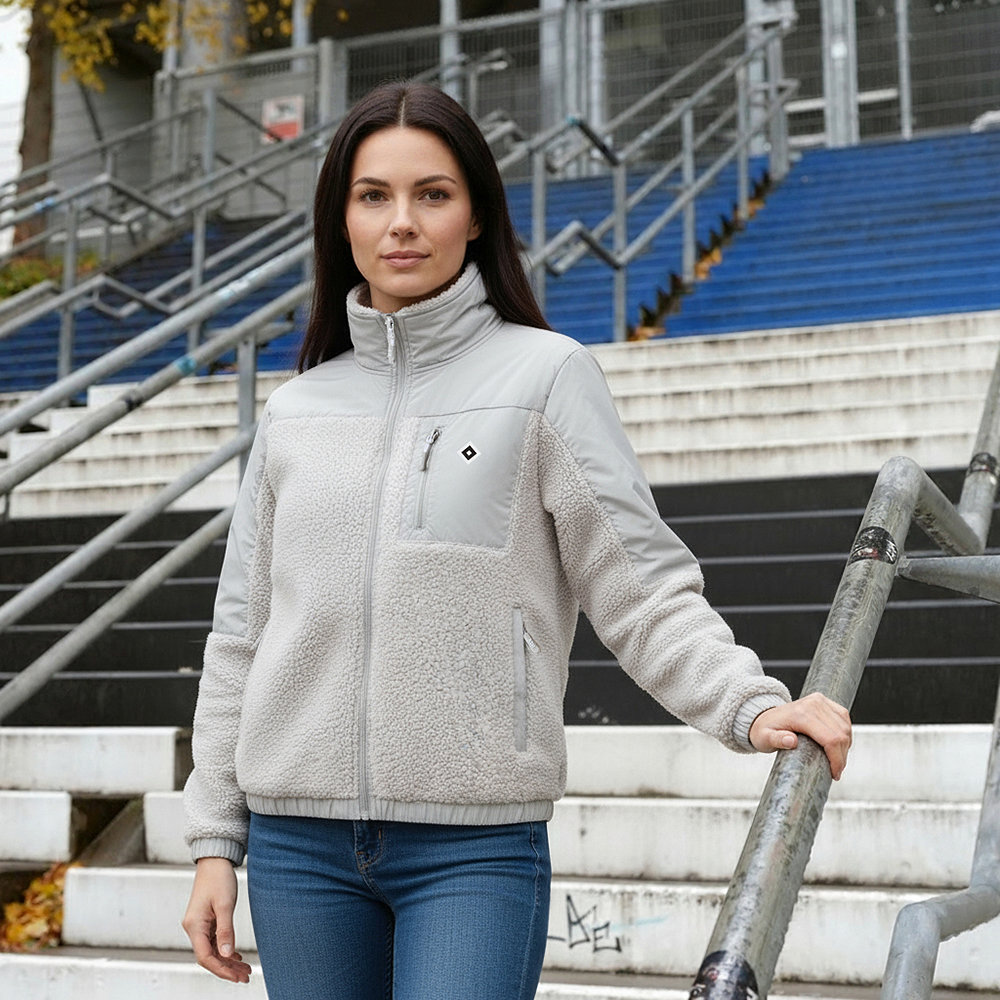 Im Kampf gegen stürmisches Wetter bist du mit der Damen Fleecejacke „Gia“ dank des hochschließenden Kragens bestens ausgestattet. Die hellgraue Damenjacke mit dem kuscheligen Außenmaterial, zwei Reißverschlusstaschen an der Seite und einer Reißverschlusstasche auf der Brust wird abgerundet durch die HSV-Raute auf der linken Brustseite. So wird jedem klar, für welchen Verein aus Hamburg dein Fanherz schlägt.