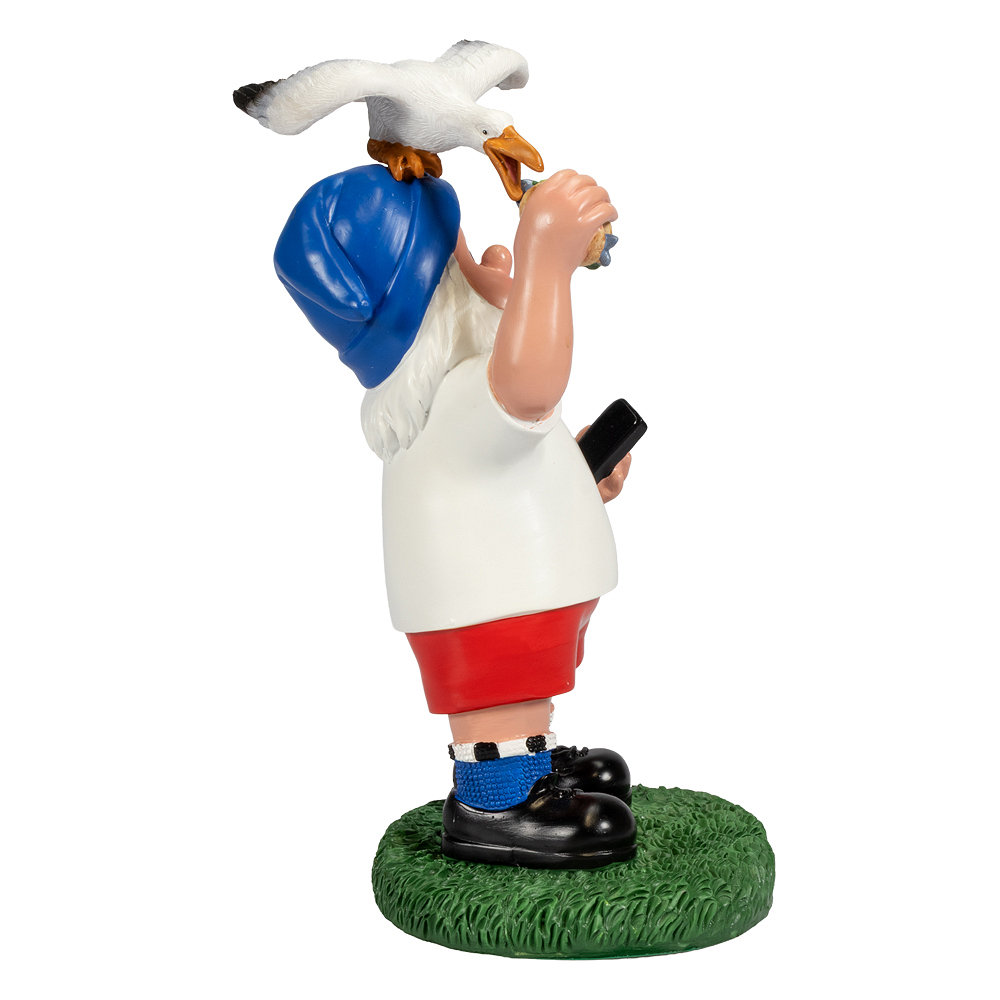 Mit dem Gartenzwerg „Möwe“ wird dein Garten noch schöner. Der Zwerg im HSV-Outfit und mit Handy und Fischbrötchen in der Hand wird dank der Möwe zum echten Hingucker in deiner heimischen Oase.