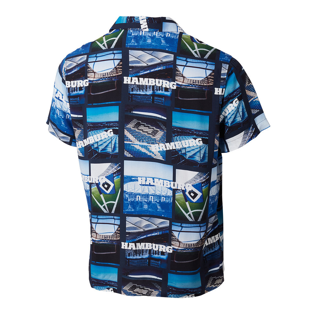 Hol dir dein perfektes Sommer-Statement mit dem Hemd „Flynn“ vom HSV! Mit dem auffälligen Design mit zahlreichen Stadionmotiven bringt das Kurzarm-Hemd deine Leidenschaft für deinen Verein perfekt zum Ausdruck. Egal ob am Strand, beim Grillen oder im Stadion, das blau-weiß-schwarze Hemd passt immer. Abgerundet wird das Hemd mit einer HSV-Raute auf der linken Brust.