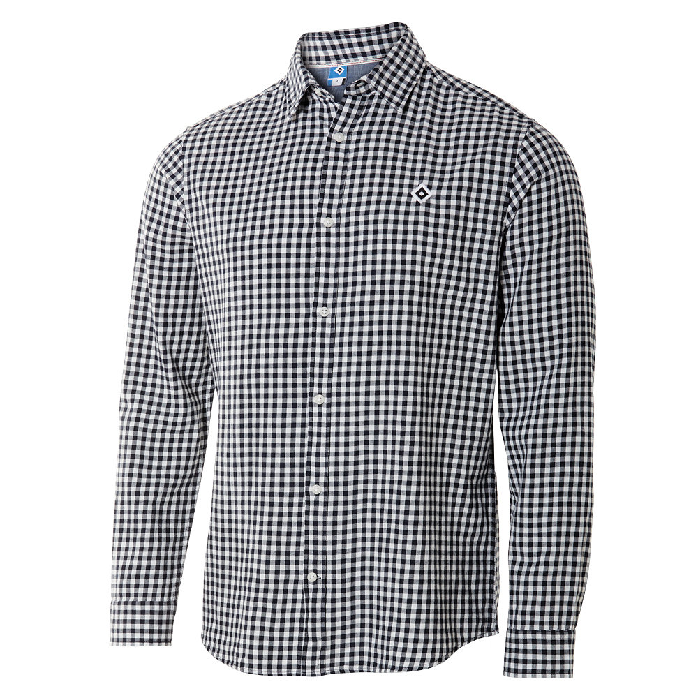 Das schwarz-weiße Hemd „Heinrich“ vom HSV beweist mit dem zeitlosen Karomuster stillvolle Fanmode. Das Highlight des Langarmhemd ist die HSV-Raute auf der linken Brust und rundet das Hemd gekonnt ab.