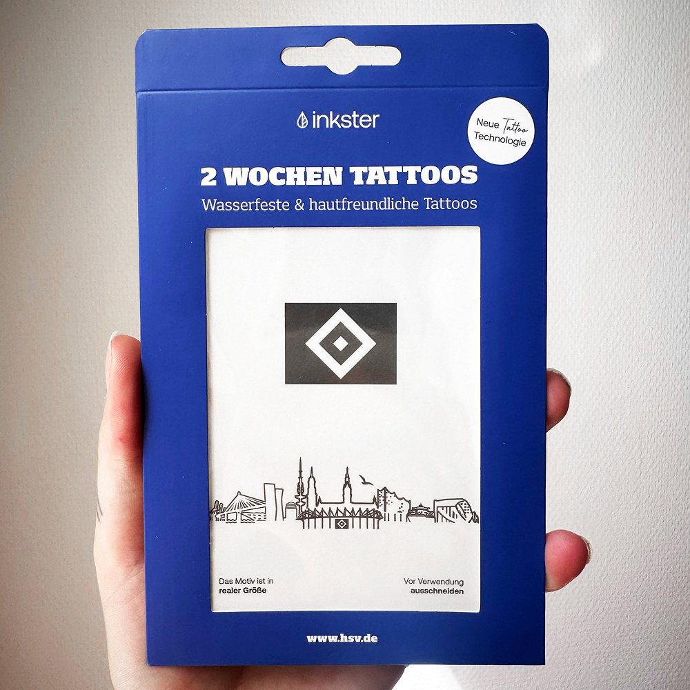 Mit dem zwei Wochen Tattoo 2er-Set „Skyline“ vom HSV trägst du deine Liebe zum Verein direkt auf der Haut. Das Set besteht aus einer Skyline mit Volksparkstadion und einer klassischen HSV-Raute.