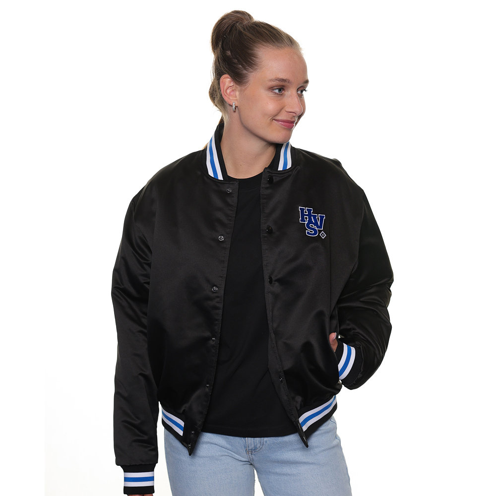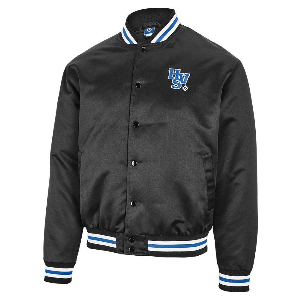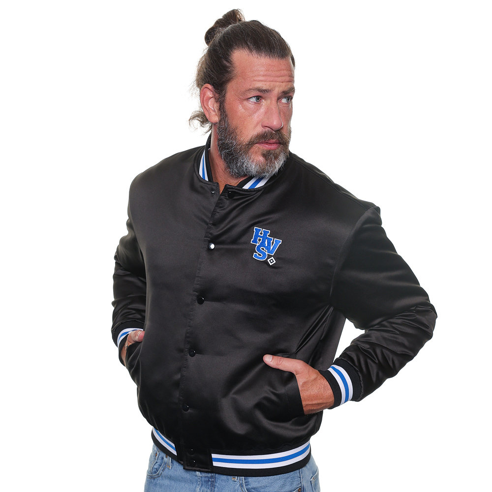 • Bereichere deine Fan-Kollektion mit der schwarzen Jacke „Bror“ vom HSV und mach dein Fan-Outfit komplett. Die Jacke mit blauem HSV-Schriftzug und HSV-Raute auf der linken Brust zeigt das perfekte Zusammenspiel zwischen sportlicher Leidenschaft und Street-Style. Abgerundet wird die Jacke durch einen Hamburg-Schriftzug hinten sowie den weiß-blauen Streifen am Kragen, Ärmelenden und Saum.