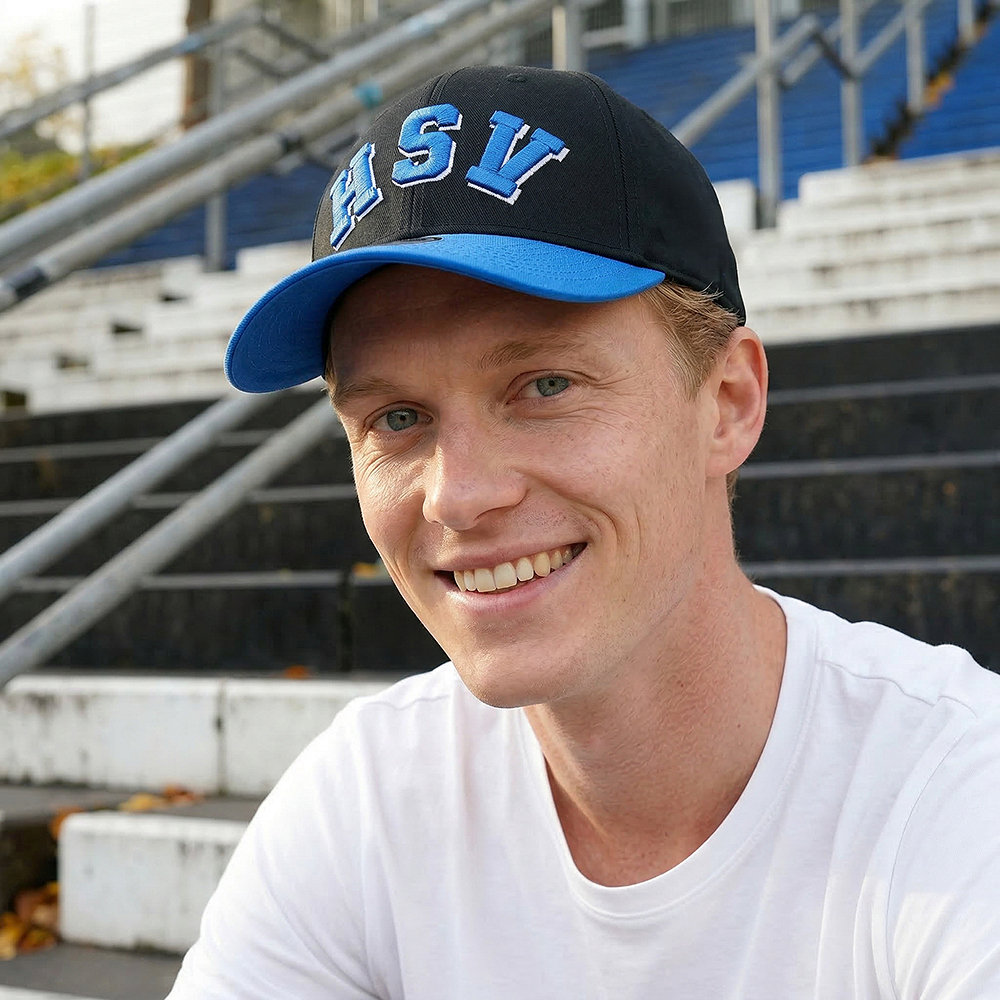 • Mit der schwarz-blauen Kappe „Harri“ setzt du ein stylisches Statement für deinen Verein. Auf der Vorderseite prangt der „HSV“-Schriftzug, auf der Rückseite rundet eine gestickte HSV-Raute das Design ab.