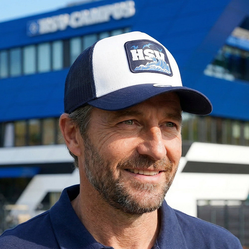 • Blau-weiße Kappe „Janus“ vom HSV