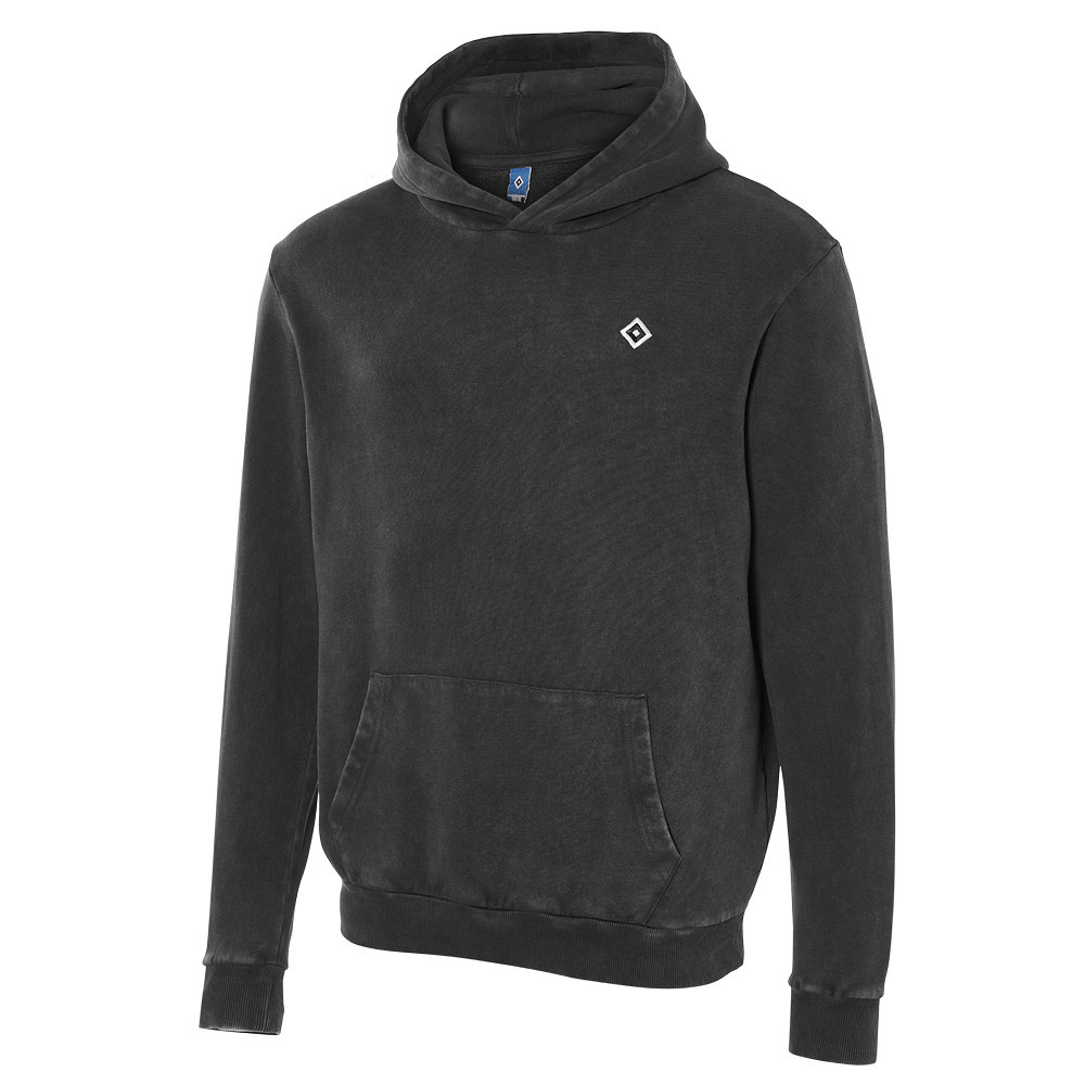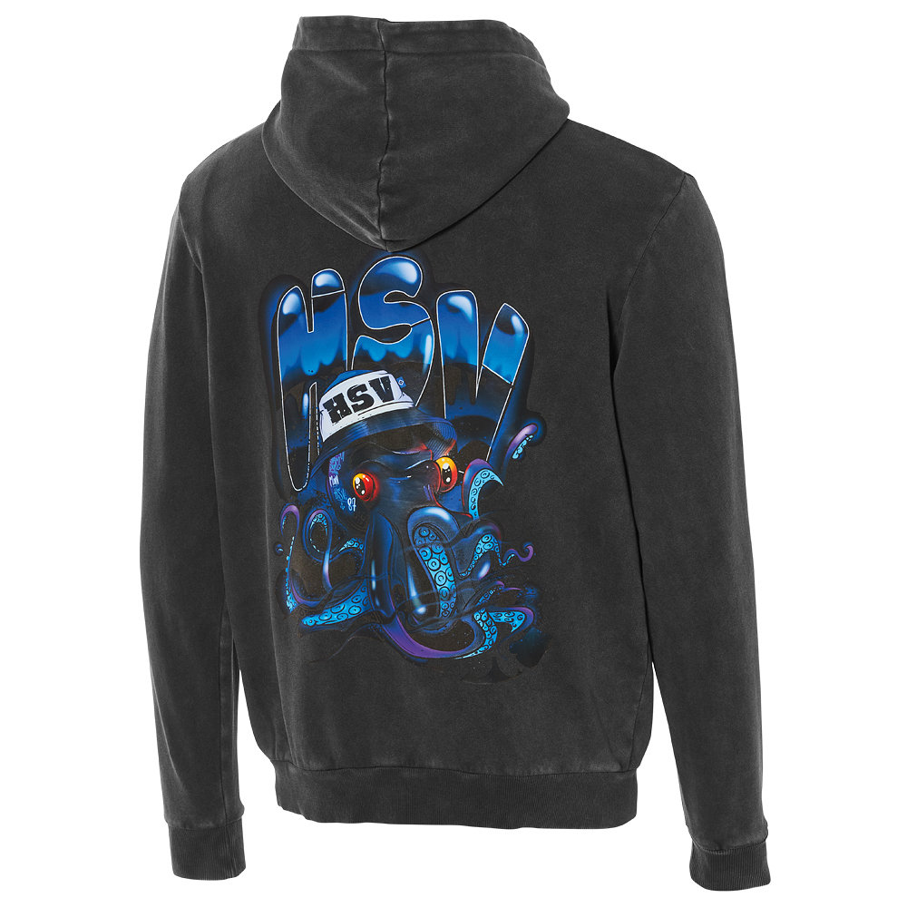 Der grau-schwarze Kapuzenpullover „Dean“ vom HSV ist ein bequemer Alltagsbegleiter und zeigt gleichzeitig deutlich, für welchen Verein dein Herz schlägt. Die Vorderseite mit gestickter HSV-Raute auf der linken Brust ist eher schlicht gehalten, die Rückseite dafür mit auffälligem Print und HSV-Schriftzug.