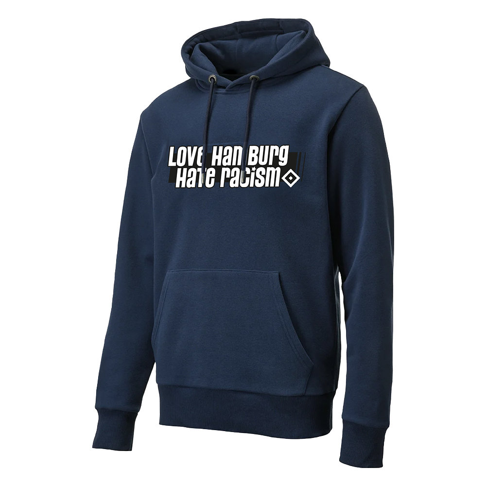 • Mit dem Kapuzenpullover „Love Hamburg - Hate Racism“ trägst du deine Werte sichtbar nach außen. Der ausdrucksstarke Slogan wurde von HSV-Fans entworfen und vom HSV-Fanprojekt etabliert. Mit den Produkten der „Love Hamburg - Hate Racism“-Kollektion stehst du für Toleranz ein und unterstützt zugleich wichtige Fanarbeit: Die Reinerlöse werden zu 100 Prozent dem HSV-Fanprojekt gespendet.