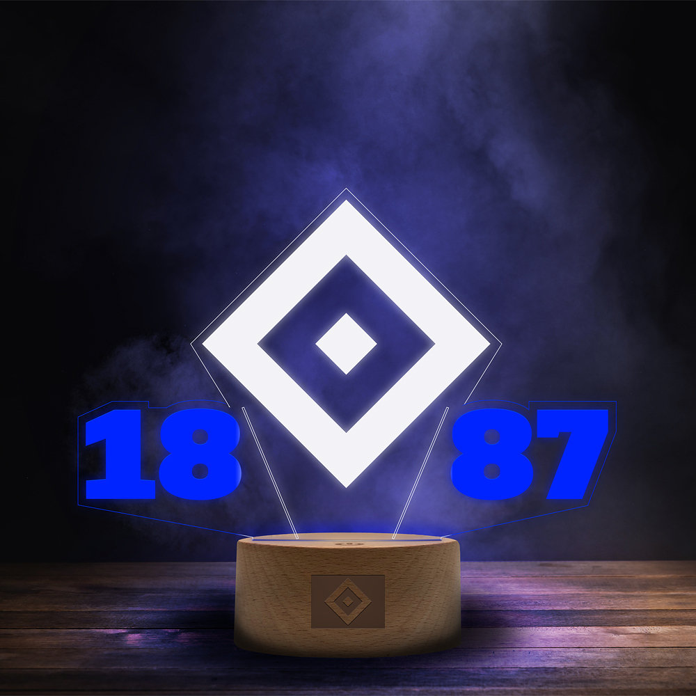 Ein Licht, das niemals erlischt – so wie deine Liebe und Leidenschaft zum Hamburger SV. Das HSV LED-Licht "1887" ist eine tolle Licht-Deko für den Schreibtisch, Regal und vieles mehr. Das 2-farbige LED-Licht mit Holzsockel und HSV-Raute verfügt über einen Touchbutton zum Ein-/Ausschalten, Stromversorgung per Micro-USB Kabel oder über 3 Batterien Typ AA (nicht im Lieferumfang enthalten)