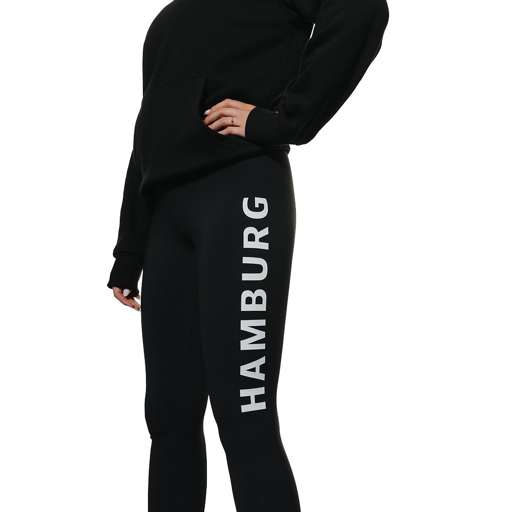 Mit der schwarzen Leggings „Hamburg“ vom HSV bekommst du ein herrliches Gefühl uneingeschränkter Bewegungsfreiheit. Egal ob beim Auspowern im Fitnessstudio, beim Yoga oder einfach nur im Alltag, diese Leggings ist die perfekte Wahl. Dank der HSV-Raute auf dem rechten Hosenbein und dem Hamburg-Schriftzug auf dem linken Hosenbein kannst du deine Liebe zum HSV ganz einfach zeigen.