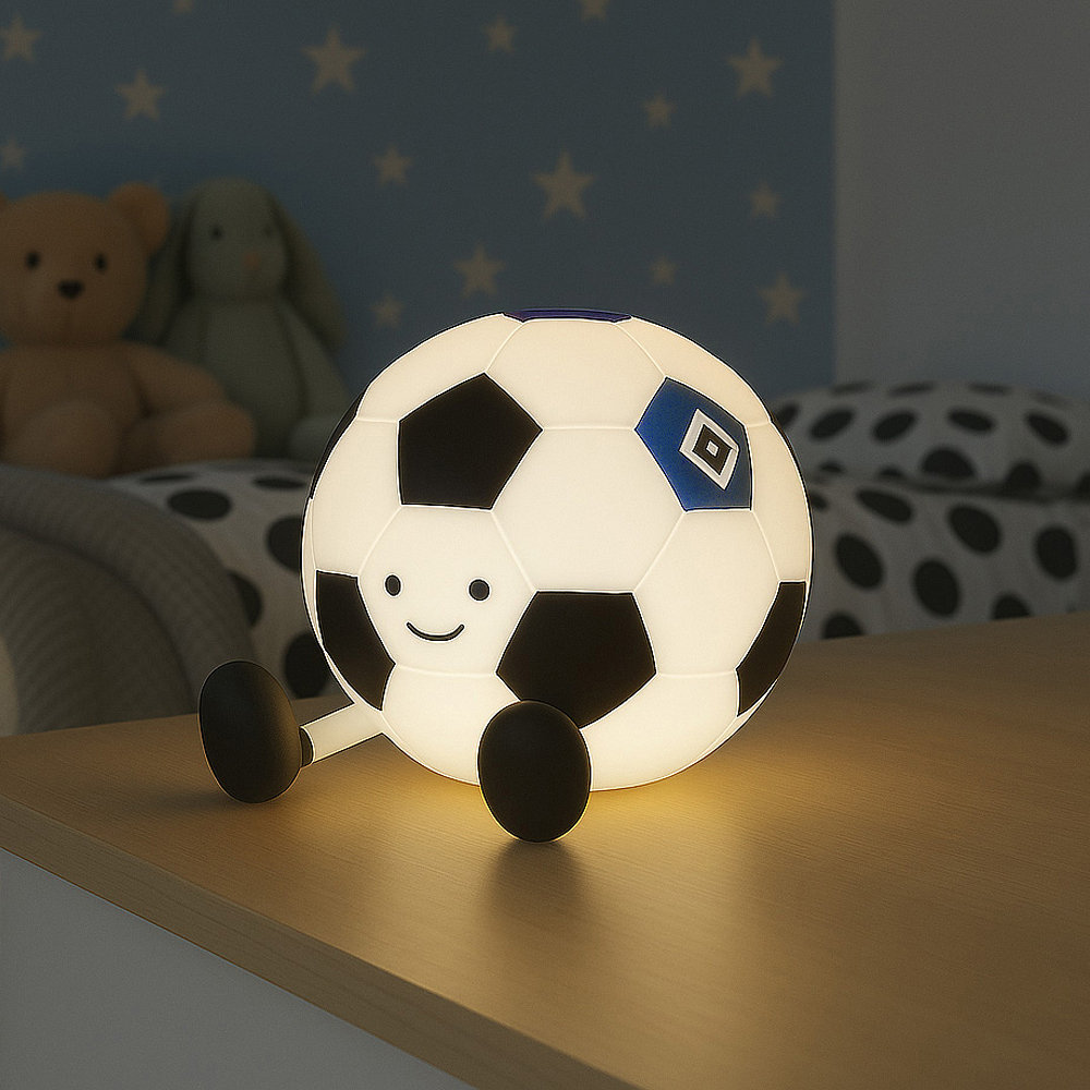 Das liebevoll gestaltete HSV-Nachtlicht im Fußball-Design bringt Wärme und Geborgenheit ins Kinderzimmer und sorgt für echte Stadionstimmung im Traumland. Dank des Touchdimmers und der Timer-Funktion lässt sich das Licht perfekt als Einschlafhilfe oder stimmungsvolle Dekobeleuchtung nutzen. Für alle kleine und große HSV-Fans, die auch im Schlaf von der Raute träumen.