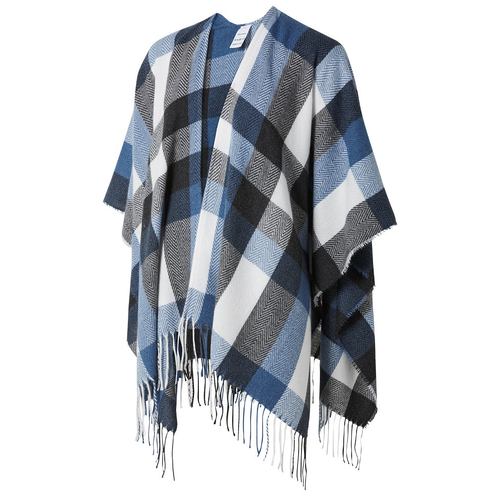 Mit dem blau-weiß-schwarzen Poncho „Allegra“ vom HSV kannst du dich in Stil und Komfort einwickeln. Der Poncho mit Fransen und Karo-Muster ist dein neuer Liebling und perfekt für den Übergang zwischen den Jahreszeiten oder als stylisches Accessoire zu deinem Herbst-Outfit.