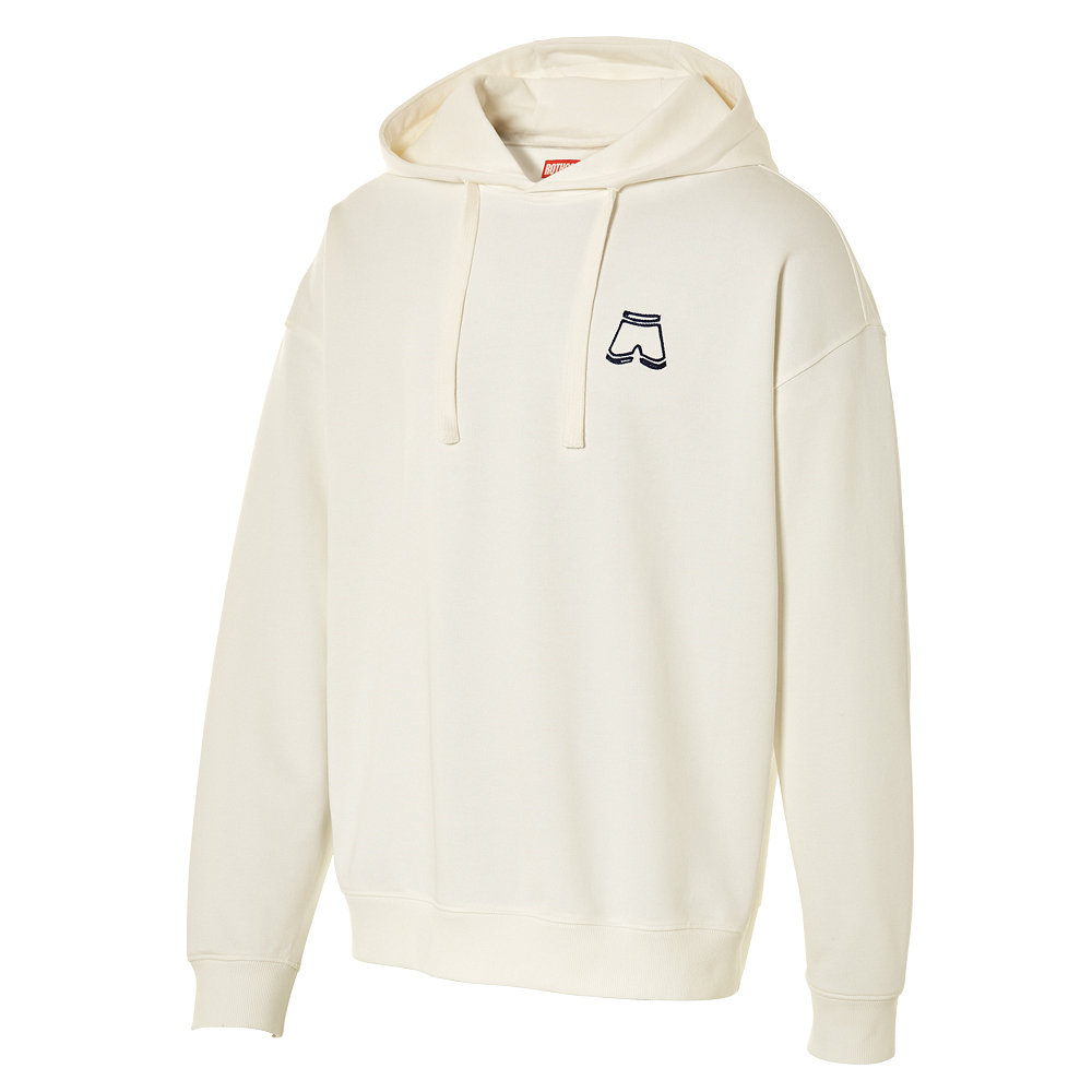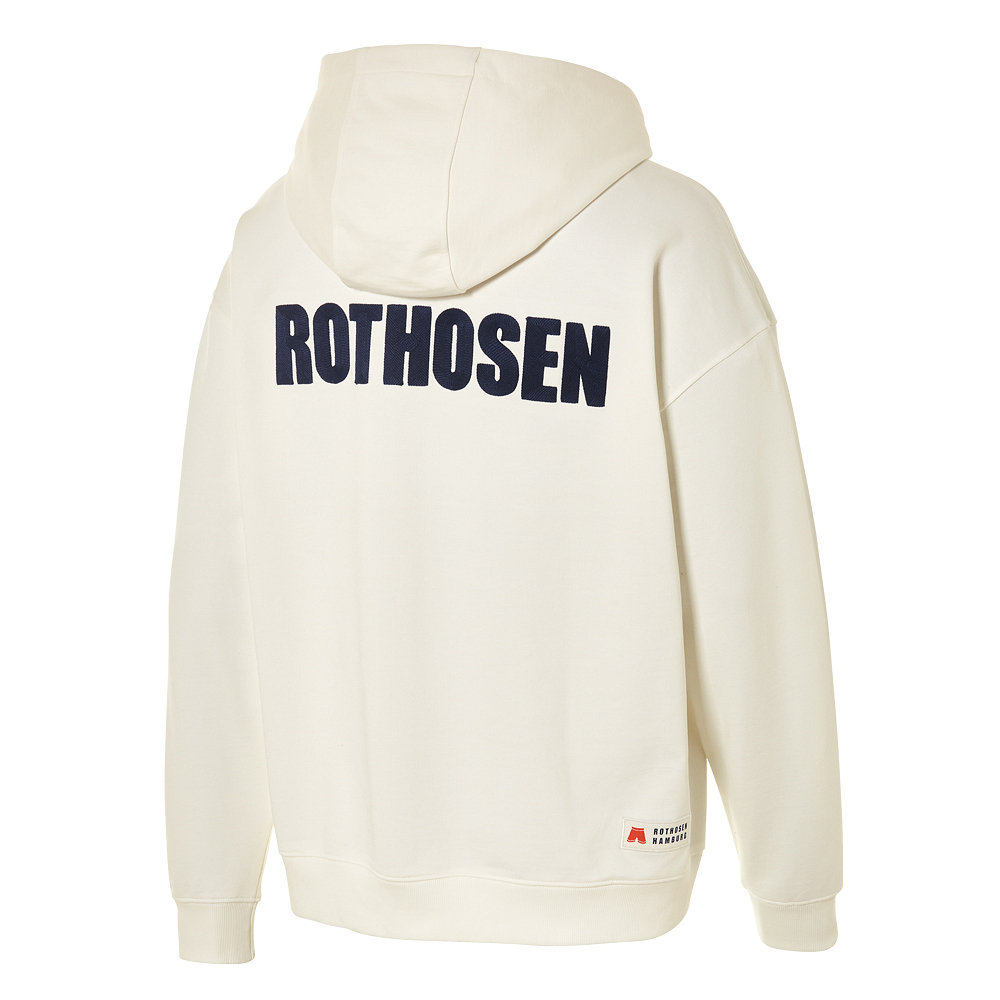 Der off-White Kapuzenpullover „Schiffskiel“ aus unserer nachhaltigen Rothosen-Kollektion kommt mit einer dunkelblau gestickten Rothose auf der linken Brust und einem Rothosen-Stick hinten.  Mit diesem Hoodie kannst du deine Liebe zum HSV ganz einfach zeigen.