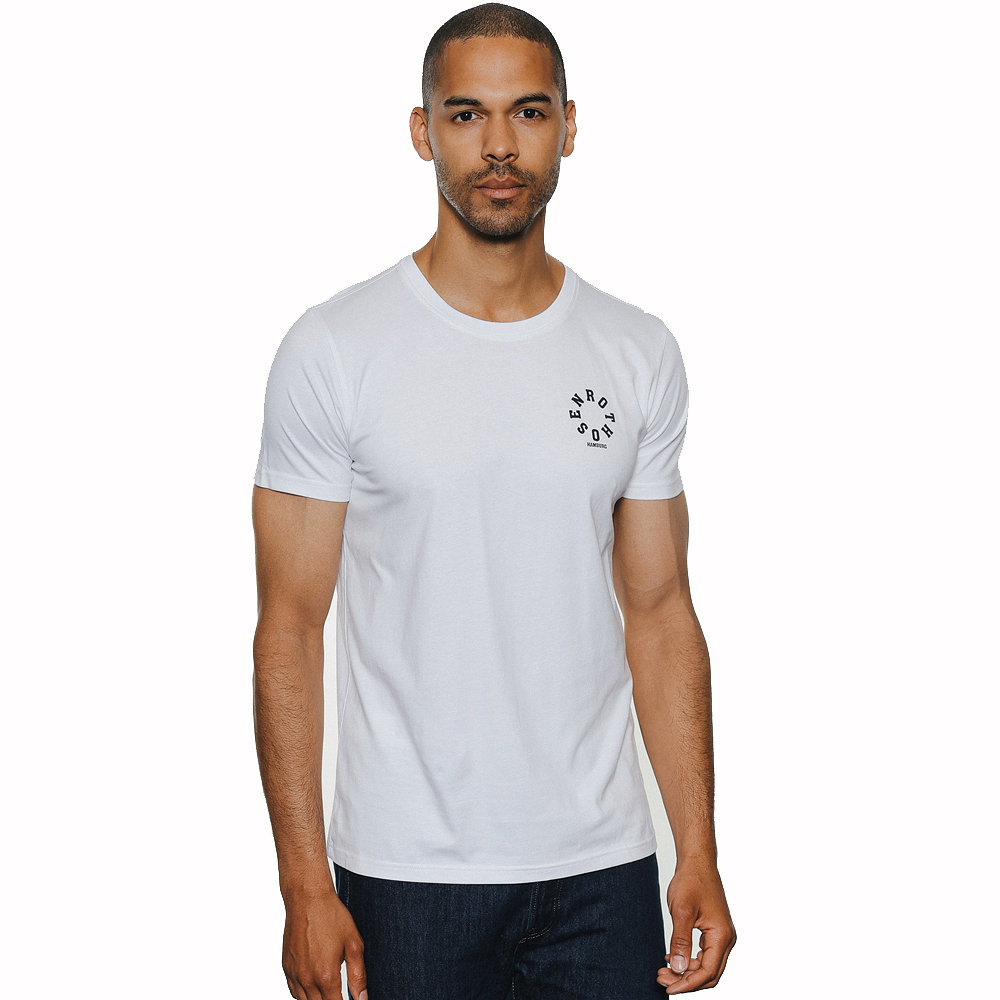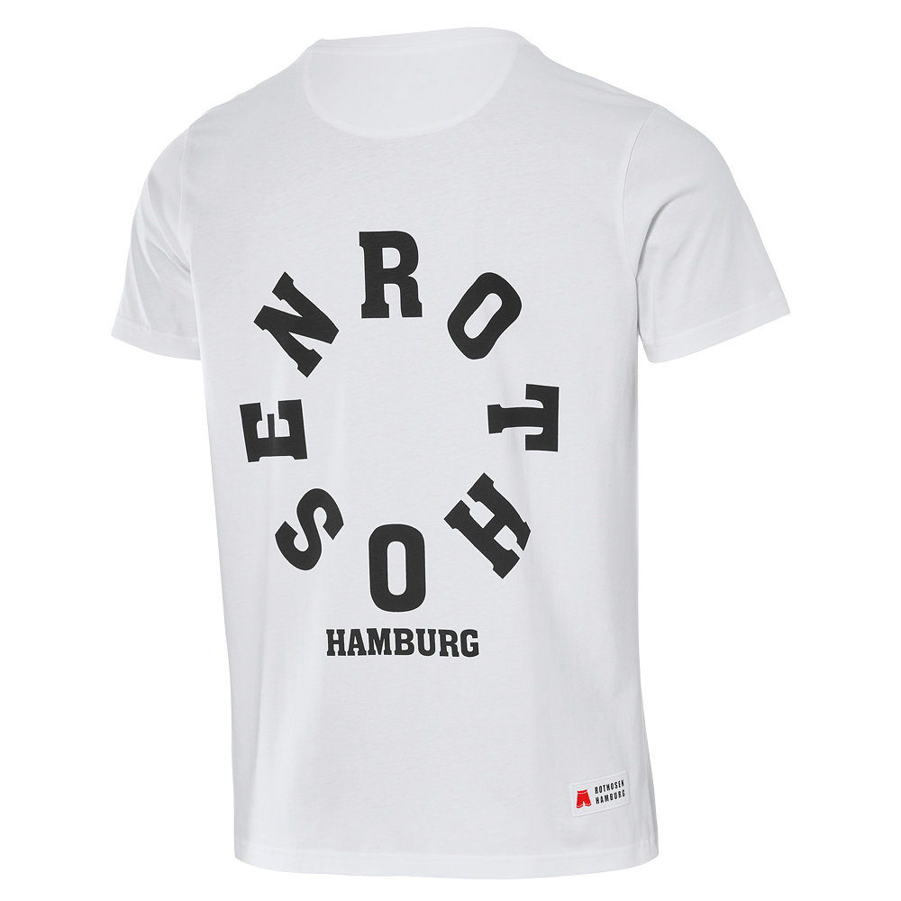 Das weiße T-Shirt „Mast“ aus unserer nachhaltigen Rothosen-Kollektion kommt mit einem schwarzen „Rothosen Hamburg“-Schriftzug auf der linken Brust. Das gleiche Motiv ist hinten als großer Rückenprint aufgedruckt und wird durch ein Badge am Saum abgerundet. Das Shirt macht dabei deutlich, für welchen Verein aus Hamburg dein Herz schlägt.