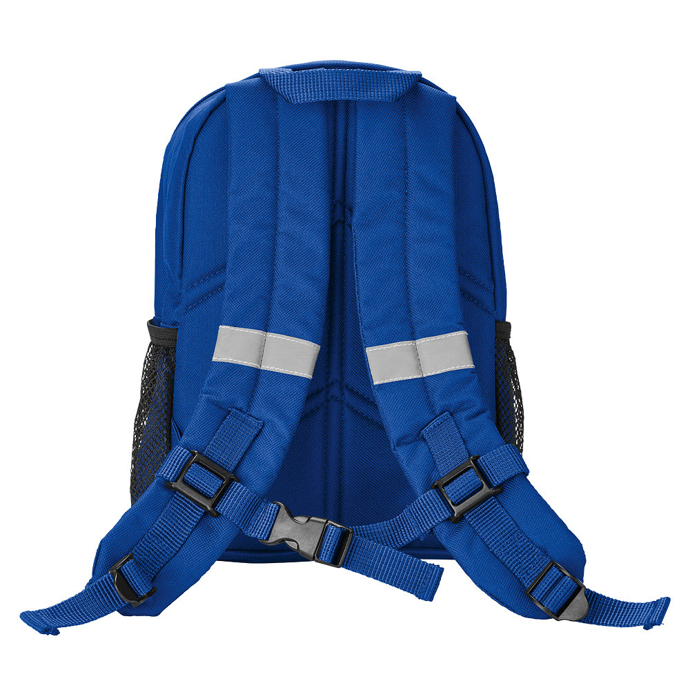 • Der blaue Kinder-Rucksack „Dino Hermann“ wartet nur darauf, mit dir tolle Abenteuer im Kindergarten oder in deiner Freizeit zu erleben. Der Rucksack mit den zwei Reißverschlussfächern sowie den beiden seitlichen Netztaschen wird durch ein „Dino Hermann“-Motiv abgerundet. Die reflektierenden Parts an dem Rucksack sorgen für mehr Sichtbarkeit im Straßenverkehr.