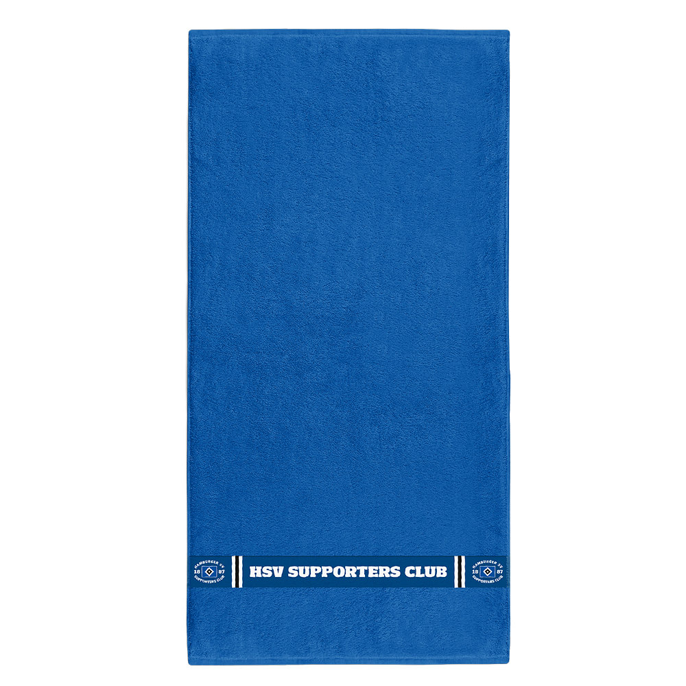 Mit dem blauen Supporters Club Duschtuch sorgst du für ein blau-weiß-schwarzes Feeling in deinem Badezimmer. Das Duschtuch mit blauer „HSV Supporters Club“-Banderole wird durch zwei SC-Logos abgerundet.