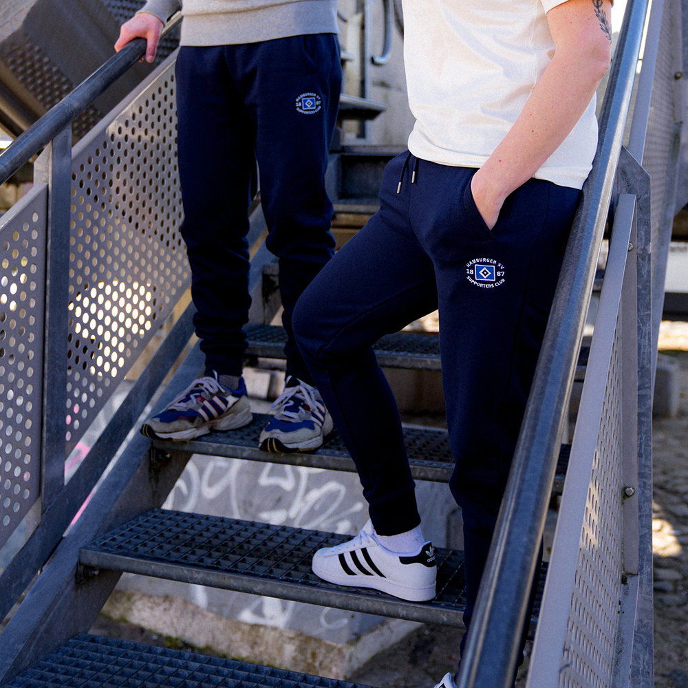 Zeig deine Verbundenheit zum HSV mit der dunkelblauen Supporters Club Jogginghose „navy“. Dank der angenehmen Baumwollqualität kannst du die Hose gemütlich auf dem Sofa oder zum Training anziehen. Der elastische Bund mit Tunnelzug sowie die weichen Bündchen machen die Hose noch gemütlicher. Das dezente, aber auffällige SC-Logo auf dem linken Hosenbein verleiht der Hose eine unverkennbare Identität und macht deutlich, für welchen Verein dein Herz schlägt.