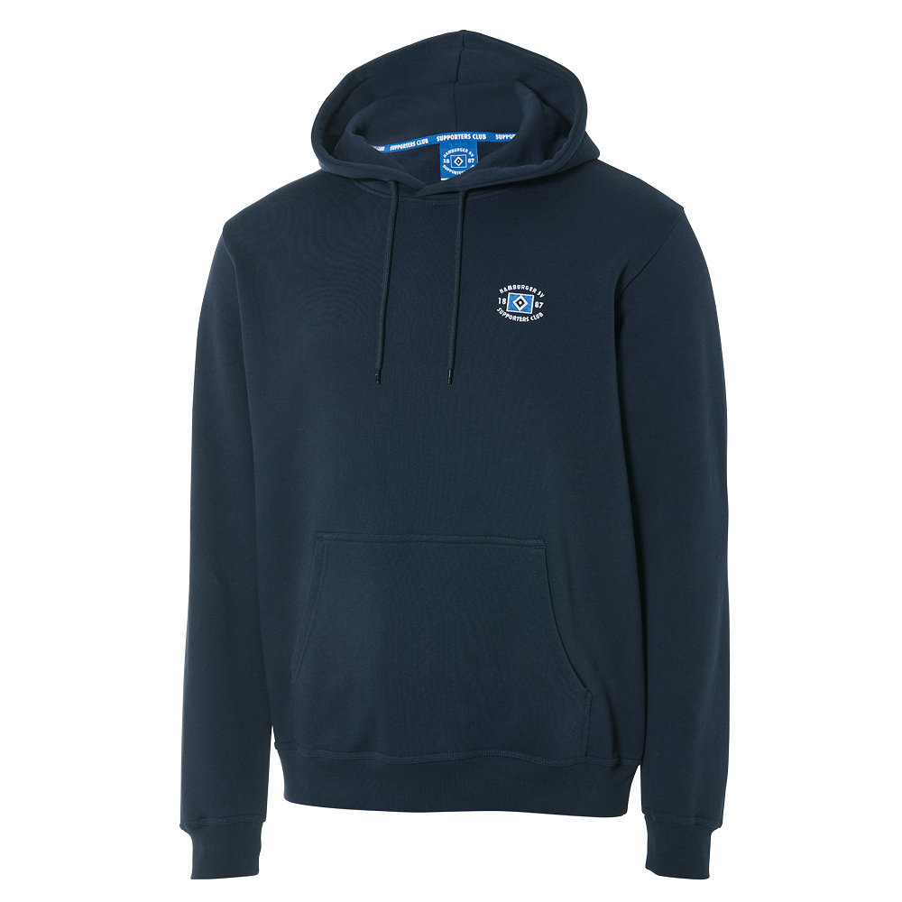 Zeig deine Verbundenheit zum HSV mit dem dunkelblauen Supporters Club Kapuzenpullover „Logo navy“. Das dezente, aber auffällige SC-Logo auf der linken Brust verleiht dem Hoodie eine unverkennbare Identität und macht deutlich, für welchen Verein dein Herz schlägt. Kombiniert mit Trainingshose oder Jeans wird ein gemütlicher Freizeitlook draus.