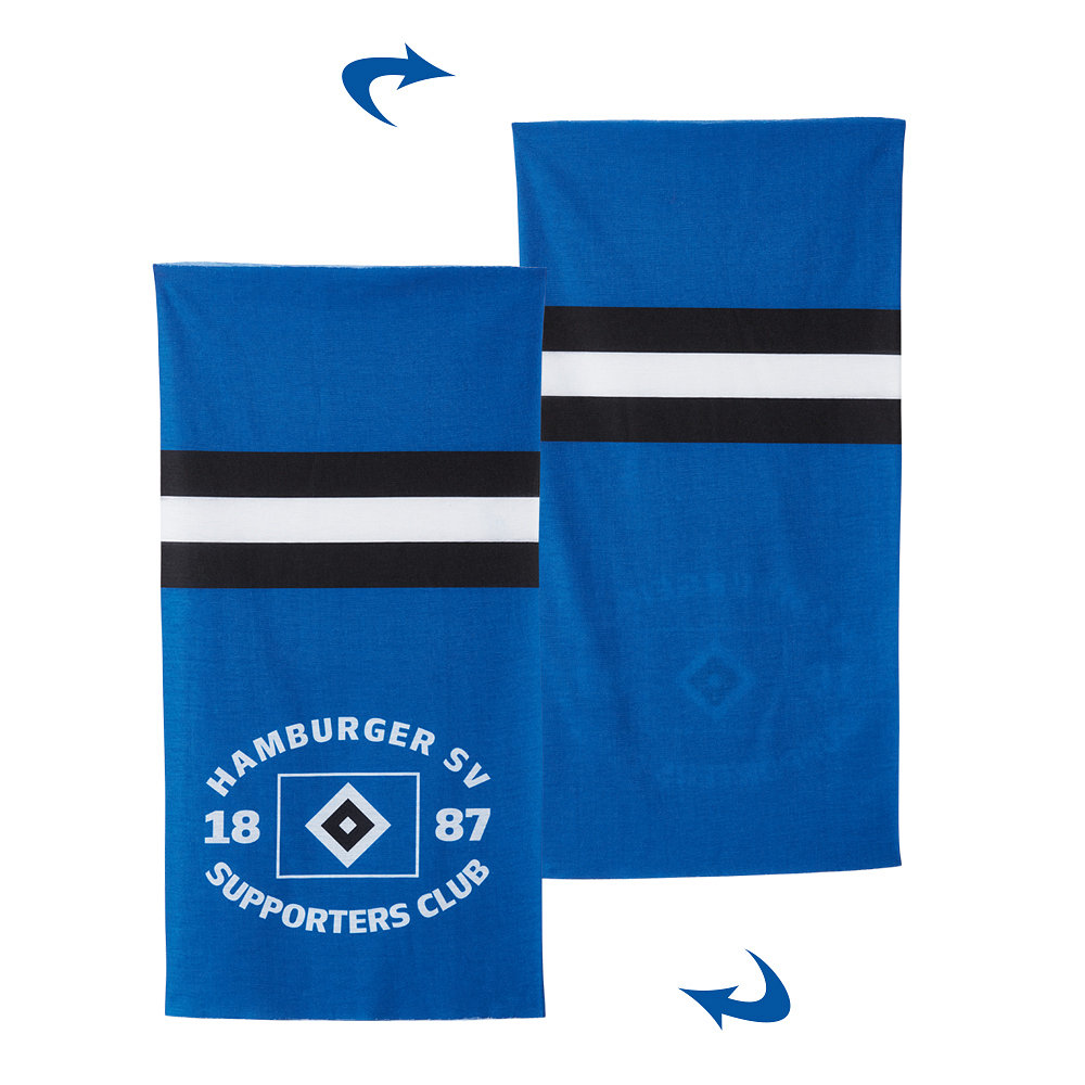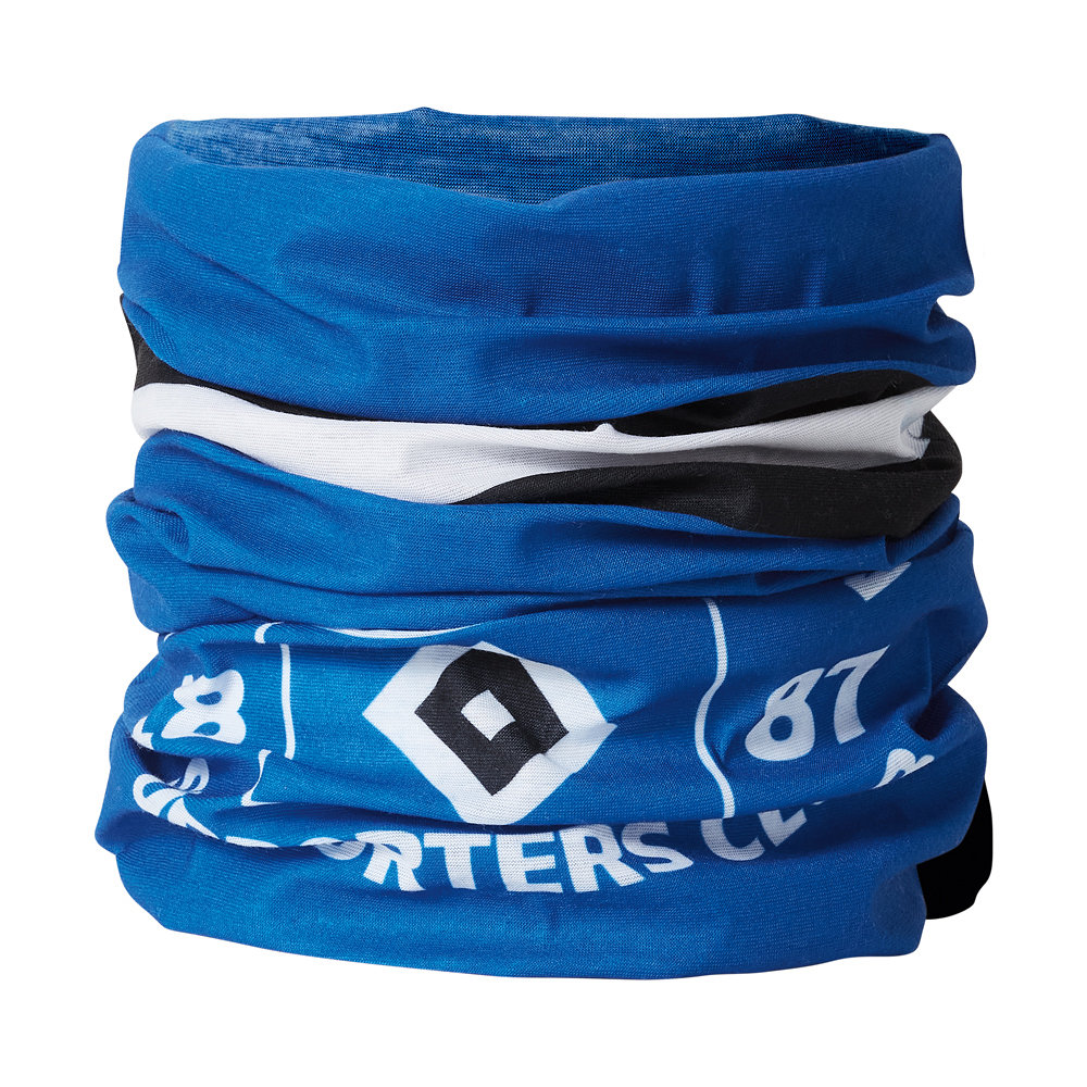 Mit dem blau-weiß-schwarzen Supporters Club Multifunktionstuch „Balken“ kannst du deine Verbundenheit zum HSV zeigen.