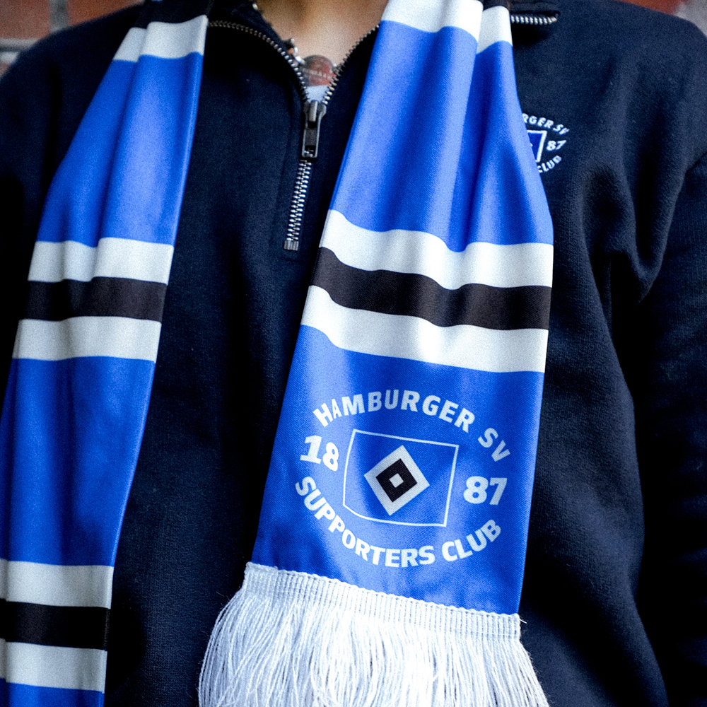 Einfach zeitlos und der Klassiker unter den Fanschals: Der blau-weiß-schwarze SC Seidenschal „Balken“ mit SC-Logo an beiden Schalenden.