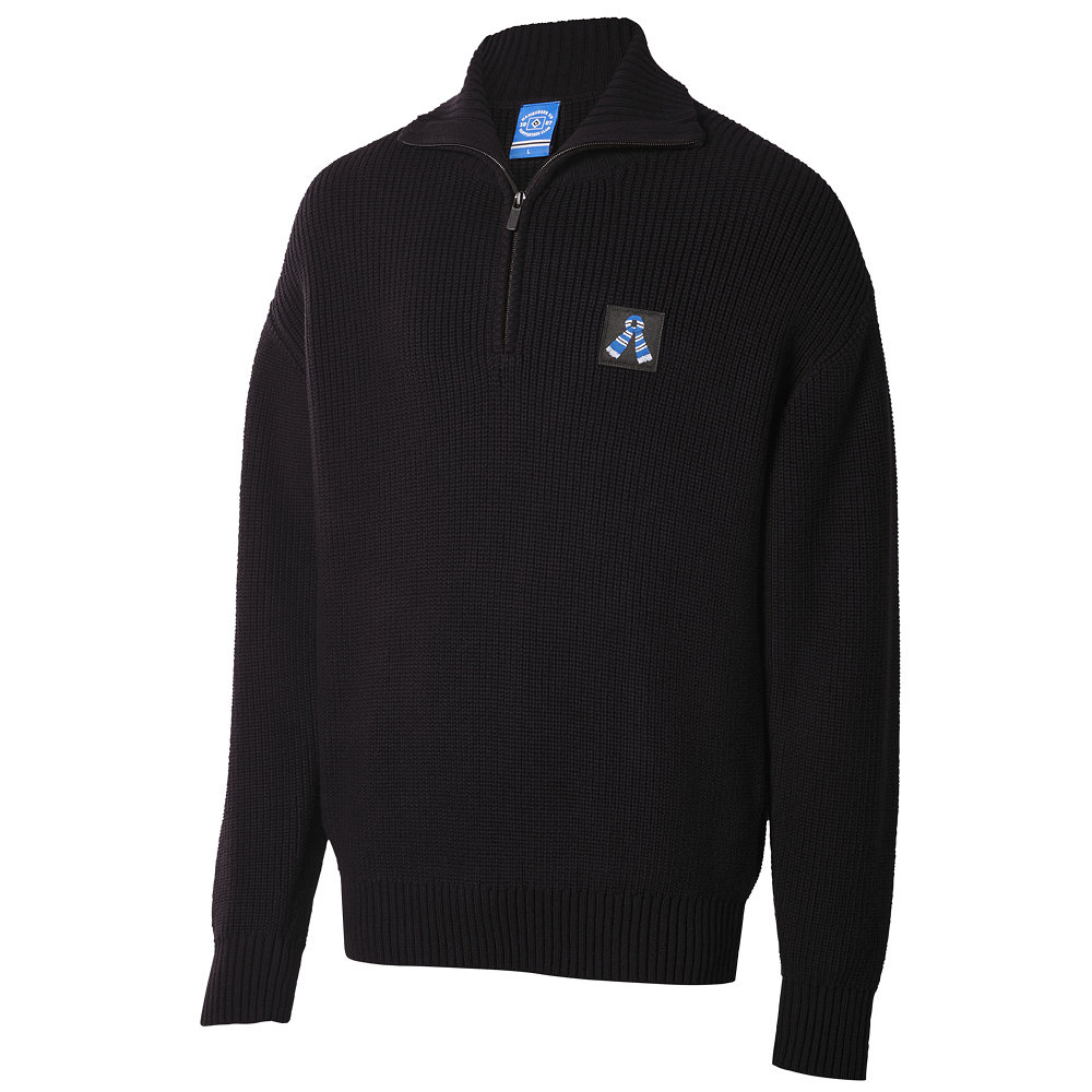 Zeig deine Verbundenheit zum HSV mit dem schwarzen Stricktroyer „Balkenschal“. Der Pullover mit Reißverschluss am Kragen wird durch ein Badge mit klassischem Balkenschal auf der Brust und SC-Logo auf dem linken Ärmel abgerundet.