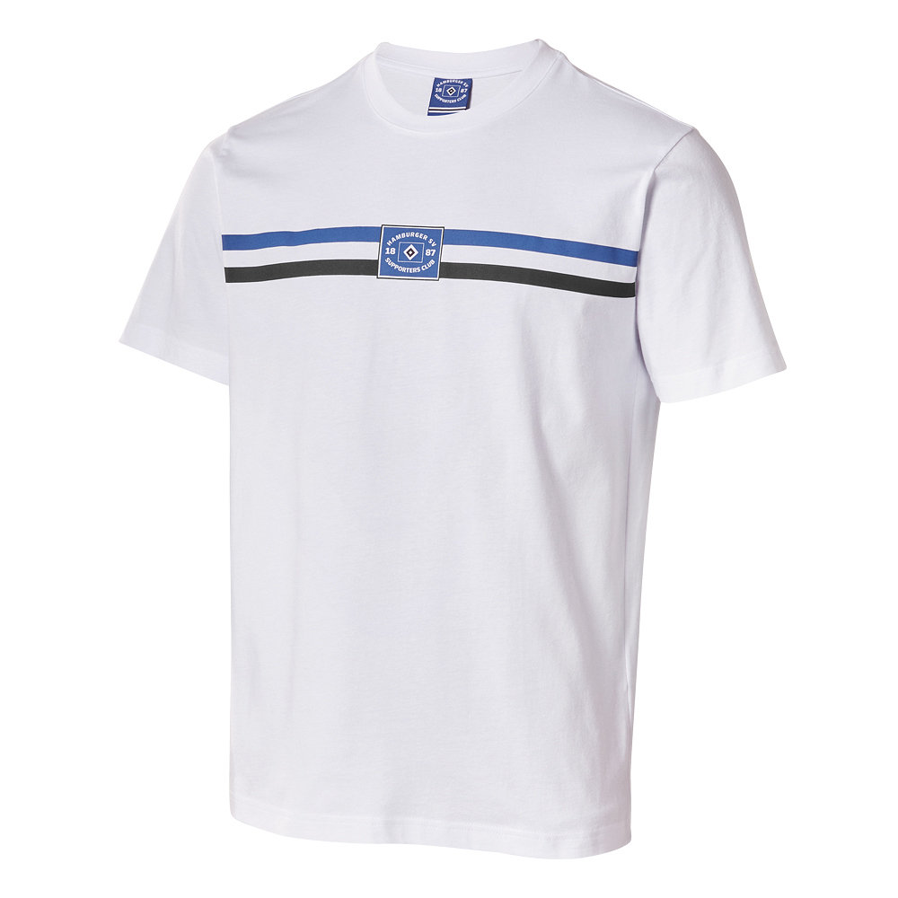 Zeig deine Verbundenheit zum HSV mit dem weißen Supporters Club T-Shirt „Banderole“. Das Shirt mit blau-weiß-schwarzen Querstreifen über der Brust wird durch das SC-Logo in der Mitte abgerundet und macht deutlich, für welchen Verein dein Herz schlägt.