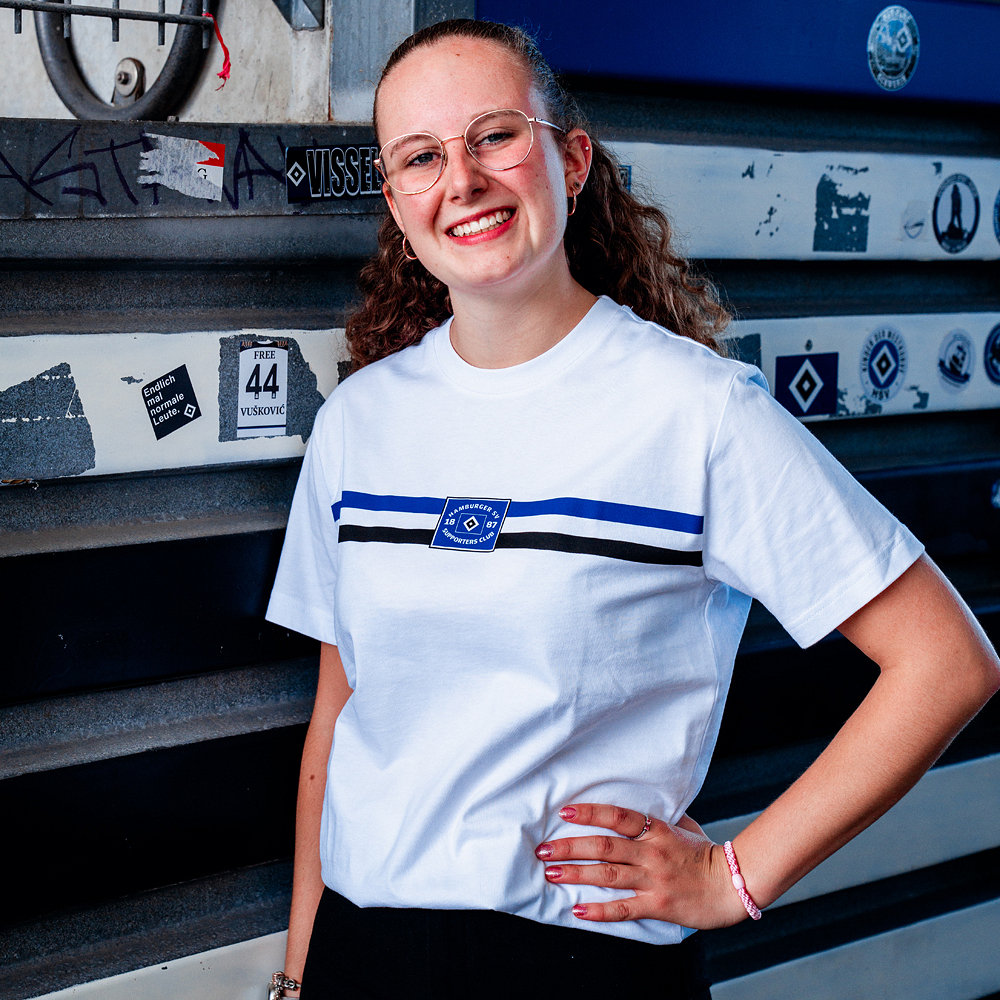 Zeig deine Verbundenheit zum HSV mit dem weißen Supporters Club T-Shirt „Banderole“. Das Shirt mit blau-weiß-schwarzen Querstreifen über der Brust wird durch das SC-Logo in der Mitte abgerundet und macht deutlich, für welchen Verein dein Herz schlägt.