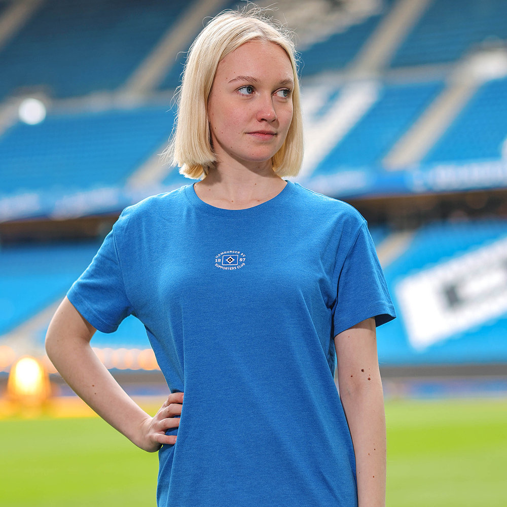 Zeig deine Verbundenheit zum HSV mit dem blauen Supporters Club T-Shirt Damen „Logo mittig blau“. Das dezente, aber auffällige SC-Logo mittig vorne auf der Brust verleiht dem Damen-Shirt eine unverkennbare Identität und macht deutlich, für welchen Verein dein Herz schlägt.
