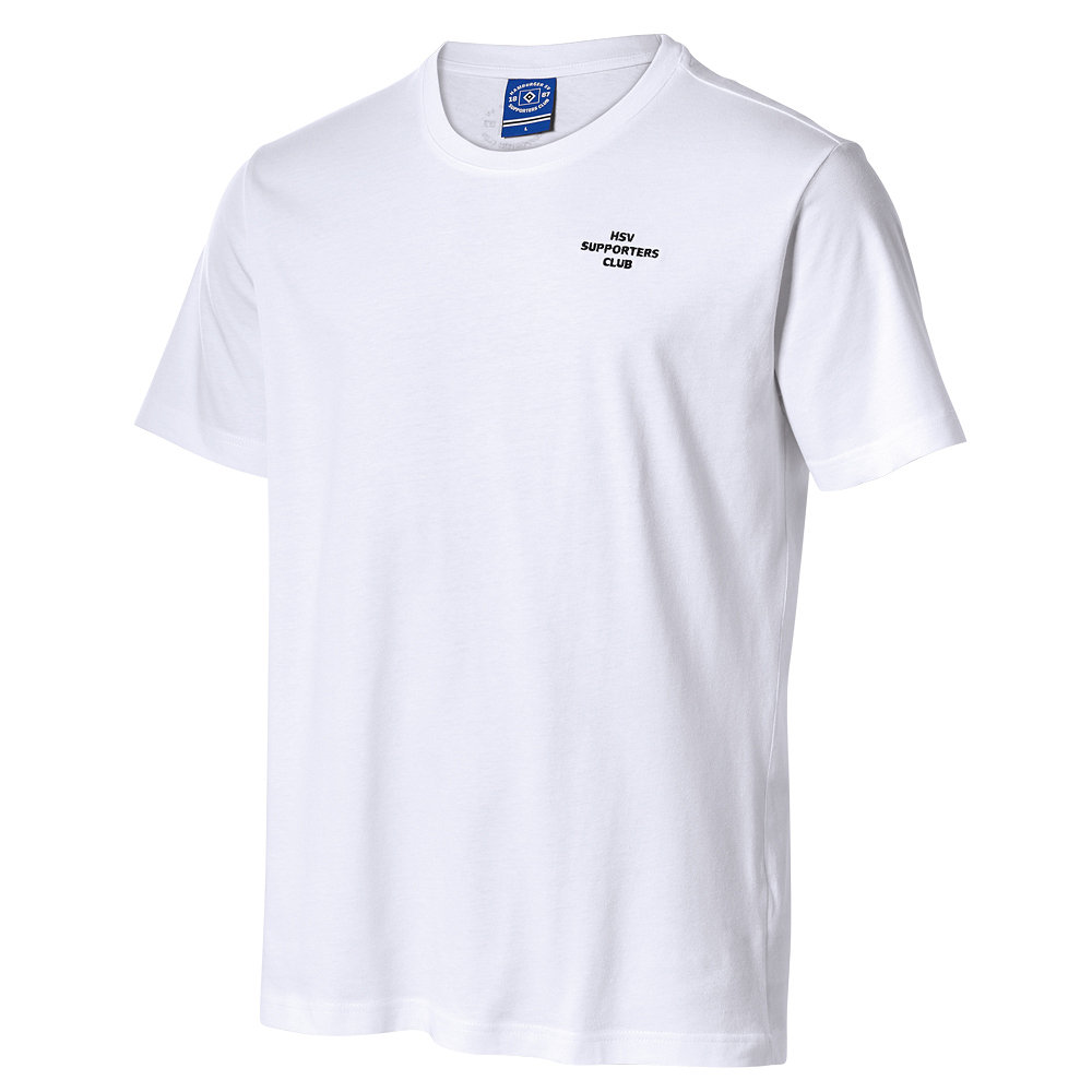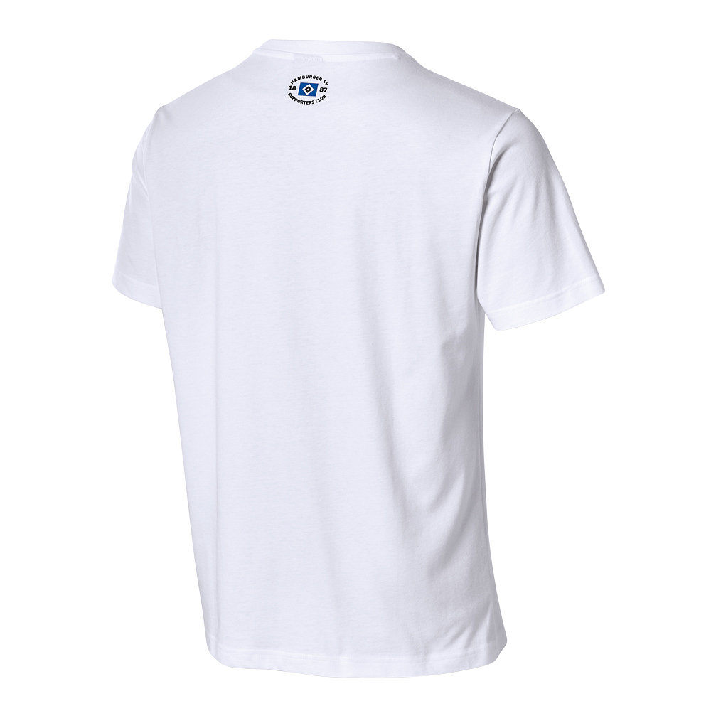 Zeig deine Verbundenheit zum HSV mit dem weißen Supporters Club T-Shirt „Schriftzug weiß“. Das Shirt mit „HSV Supporters Club“-Schriftzug auf der linken Brust wird durch das SC-Logo im Nacken abgerundet und macht deutlich, für welchen Verein dein Herz schlägt.