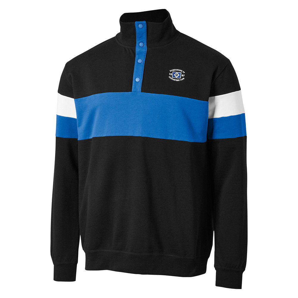 Zeig deine Verbundenheit zum HSV mit dem Supporters Club Troyer „schwarz“. Der Pullover mit Druckknöpfen am Kragen kommt in den traditionellen Vereinsfarben und besticht durch sein schlichtes, aber auffälliges Design. Das gestickte SC-Logo auf der linken Brust verleiht dem Troyer eine authentische und nostalgische Note.