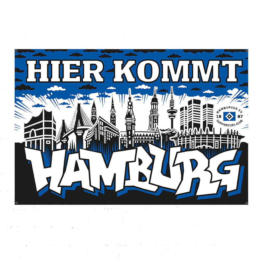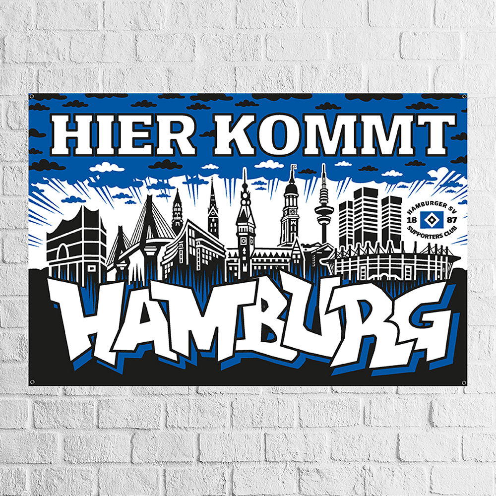 Mit der SC Wandfahne „Hier kommt Hamburg“ holst du dir Stadt und den HSV direkt in dein Zuhause! Die Wandfahne mit der Skyline und dem Volksparkstadion macht sich super im Wohnzimmer, im Büro oder in der Fan-Ecke.