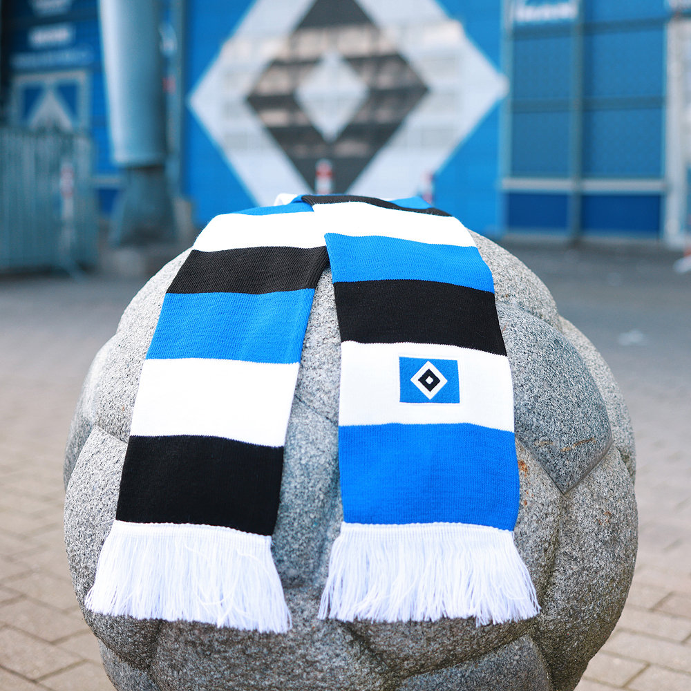 Unseren klassischen Fanschal in den Vereinsfarben blau, weiß und schwarz gibt es nun auch als Kindervariante. Abgerundet wird der Schal durch eine HSV-Raute.