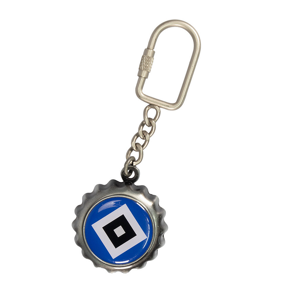 Ob im Stadion, am Grill oder unterwegs: Der Schlüsselanhänger „Kronkorken blau“ verbindet Fanliebe mit Funktion. Auf der Vorderseite ist die HSV-Raute und die Rückseite kannst du als praktischen Flaschenöffner nutzen.