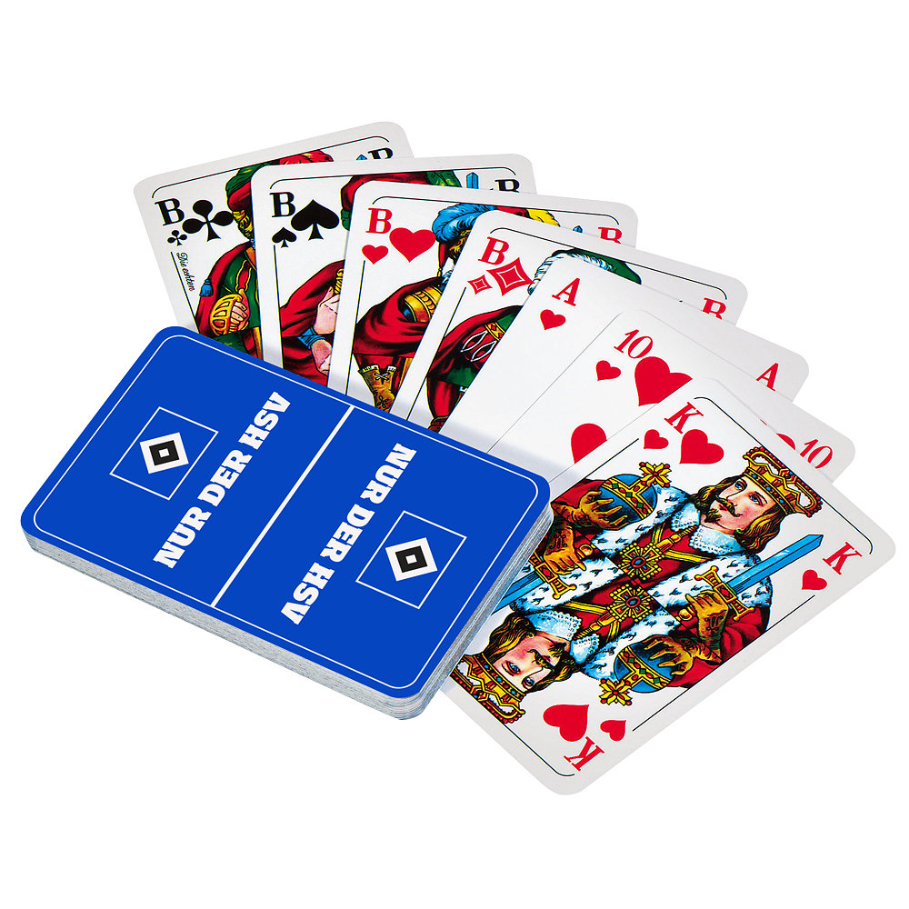 Das Set enthält 32 Karten und ist ideal für spannende Skat-, Doppelkopf,-, Schafkopfrunden mit Freunden und Familie. Die Rückseite des Kartenspiels ziert eine HSV-Raute und der Schriftzug „Nur der HSV“.
