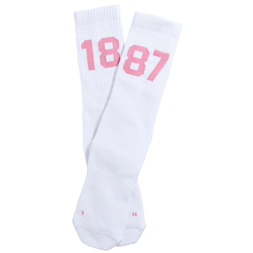 Keine andere Zahl steht so sehr für unseren HSV! Und nun kannst du das Gründungsjahr von deinem Verein überall zeigen. Die weißen Tennissocken mit pinken 1887 Schriftzug sind ein Must-have Accessoire für jeden Fan der Rothosen.