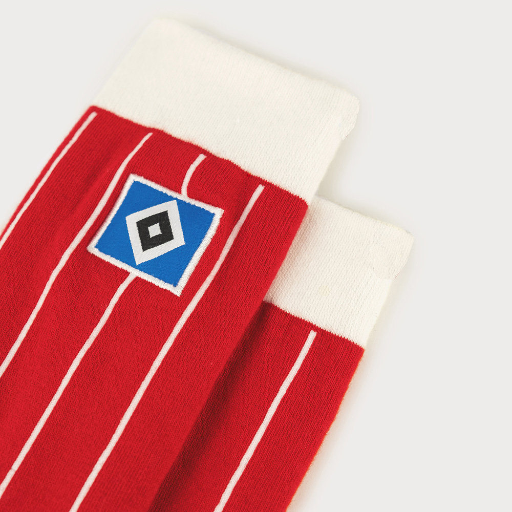 • Von oben bis unten Hamburger SV! Diese coole Socke im Retro Design, in Anlehnung an das Auswärtstrikot der Saison 1982 entwickelt, mit gewebter HSV-Raute an der Seite braucht nicht viel, um einen lässigen Style zu erzeugen.