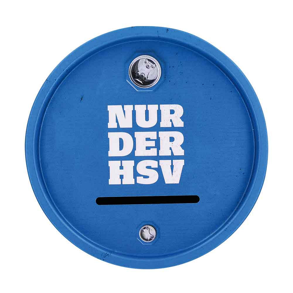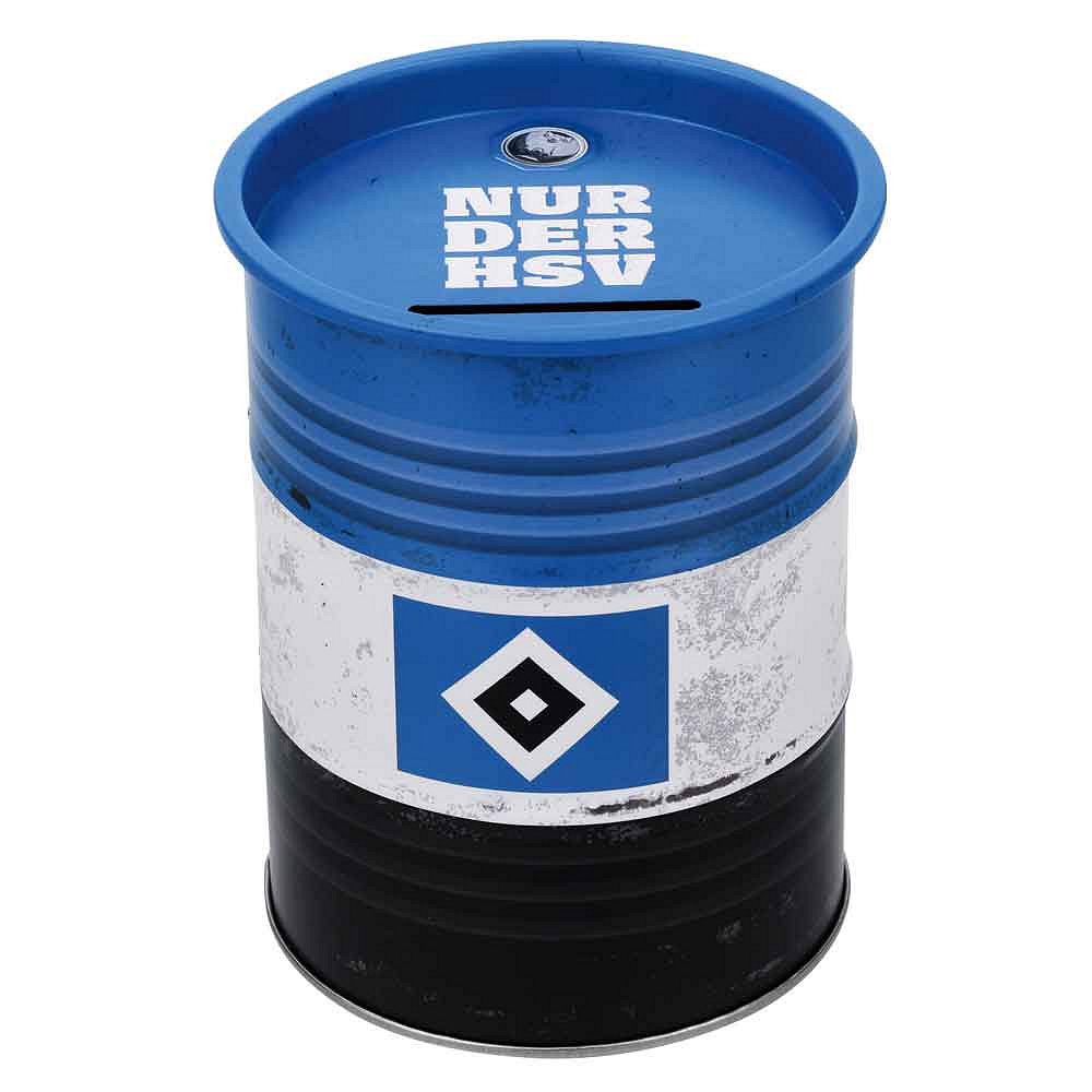 Mit dieser blau-weiß-schwarzen Spardose „Tonne“ bringst du Stadionflair direkt in dein Zuhause! Die detailreiche Gestaltung der Spardose im Used-Look und die HSV-Raute machen diese zum echten Hingucker.