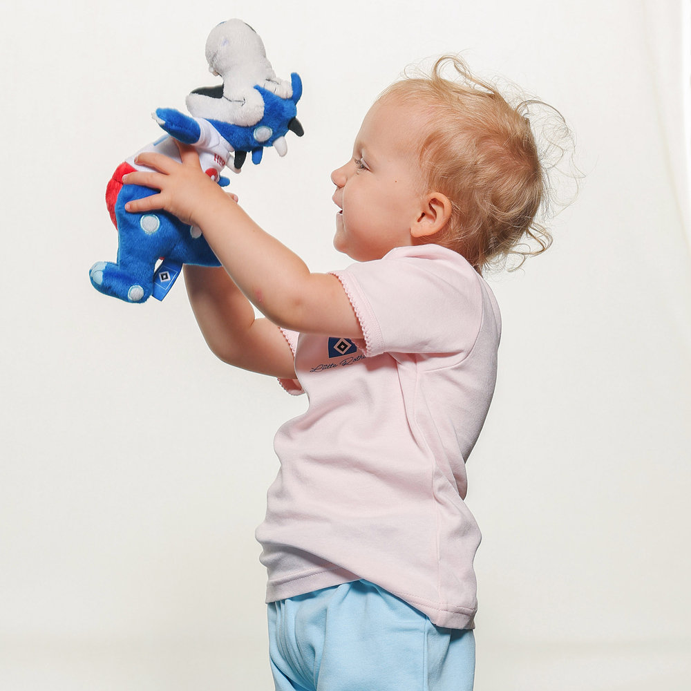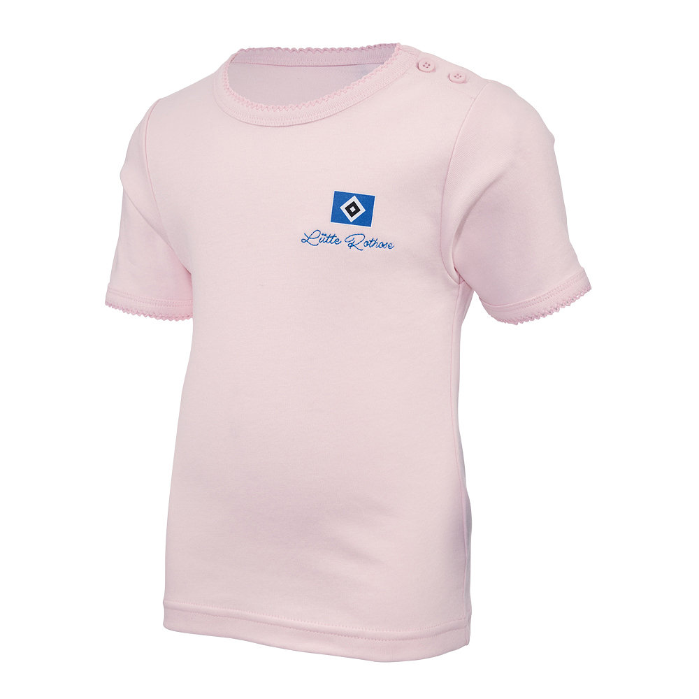 Für alle Nachwuchssupporters des HSV gibt es nun das rosa T-Shirt „Lütte Rothose“. Das Baby-Shirt mit HSV-Raute und „Lütte Rothose“-Schriftzug vorne ist aus 100% kontrolliert biologischer Baumwolle und die Knöpfe am Halssauschnitt erleichtern das An- und Ausziehen.