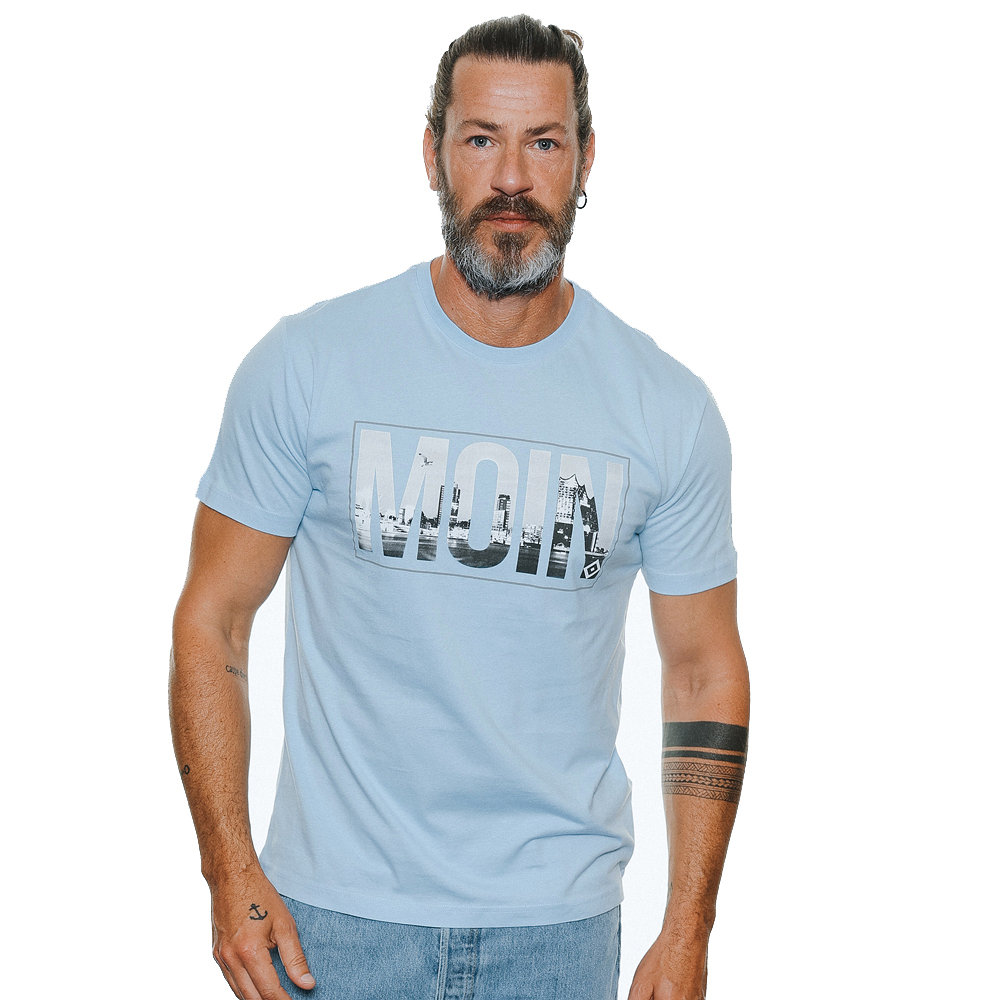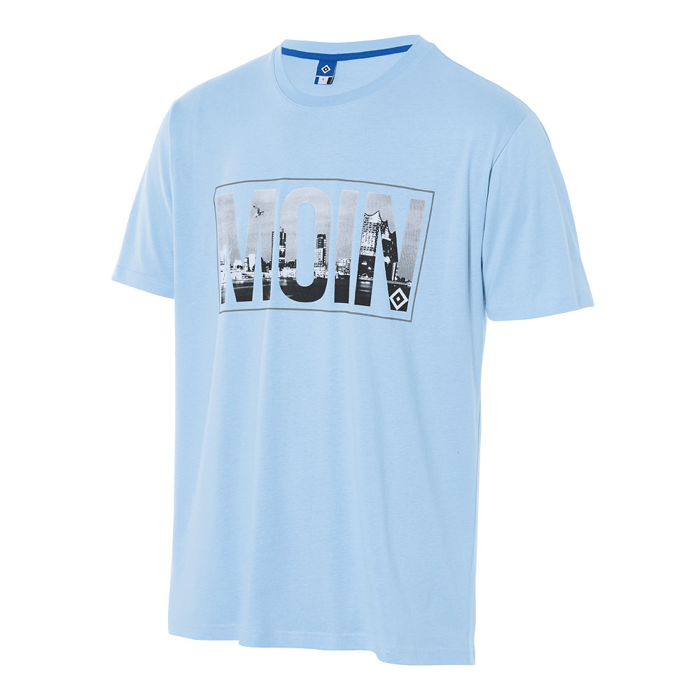 Mit dem hellblauen T-Shirt „Borge“ können Fans der Rothosen den Hamburger-Hafen im MOIN-Schriftzug voller Stolz als Print auf der Brust tragen. Abgerundet wird das T-Shirt-Design von einer HSV-Raute.