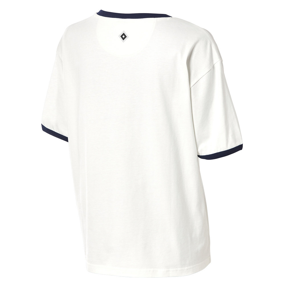 • Das weiße Damen T-Shirt „Dina“ vom HSV mit „Hamburg“-Print vorne sorgt dank der dunkelblauen Bündchen an Ärmeln und Kragen für einen coolen Look und ist perfekt für die Freizeit oder den nächsten Stadionbesuch. Abgerundet wird das Shirt durch eine HSV-Raute im Nacken.