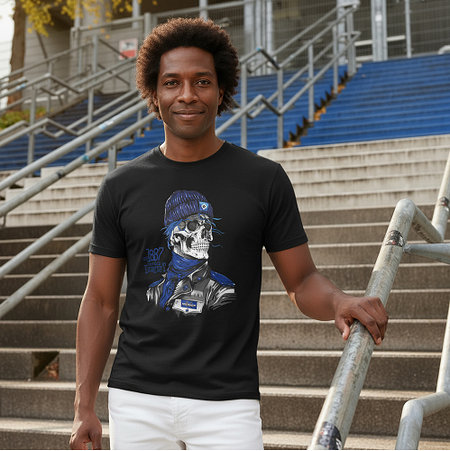 Zeige deine Leidenschaft für den HSV auf eine völlig neue Art und Weise mit dem T-Shirt „Ewigkeit – Abschlach!“. Sei mit dem schwarzen Shirt mit Skelett-Motiv und „Von 1887 bis in alle Ewigkeit“-Schriftzug bereit, alle Blicke auf dich zu ziehen, während du deine Unterstützung für deinen Lieblingsverein zeigst. Abgerundet wird das Shirt durch eine HSV-Raute auf der Mütze.