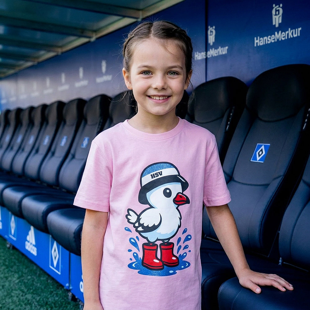 • Das pinke T-Shirt Kids „Effi“ vom HSV mit großem Küken-Print mit dem klassischem HSV-Fischerhut auf der Vorderseite macht sofort jedem klar, für welchen Verein dein Herz schlägt. Mit dezenten Glanzakzenten bei der Pfütze und dem Fischerhut setzt dieses Kindershirt ein besonderes Highlight. Egal ob im Stadion, auf dem Spielplatz oder zu Hause - dieses Kinder Shirt vom HSV ist der perfekte Begleiter für junge Fans, die ihre Verbundenheit zu ihrem Team zeigen möchten.