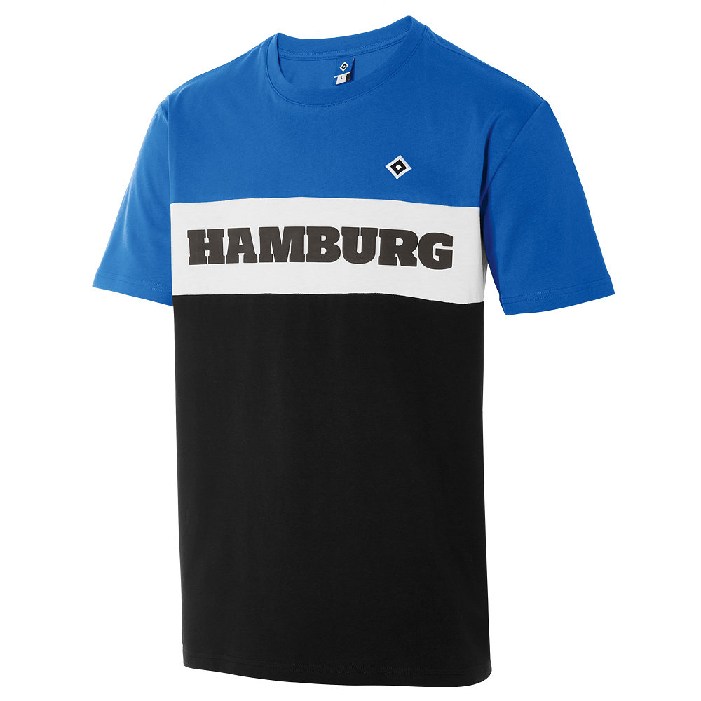 Mit diesem Kinder-Shirt in den Vereinsfarben und mit HSV-Raute kannst du in der Schule deine Liebe zum HSV ganz einfach zeigen. Das blau-weiß-schwarze T-Shirt Kids „Eliot“ mit großem HAMBURG-Schriftzug vorne wird durch eine HSV-Raute auf der linken Brustseite abgerundet. Nur der HSV!