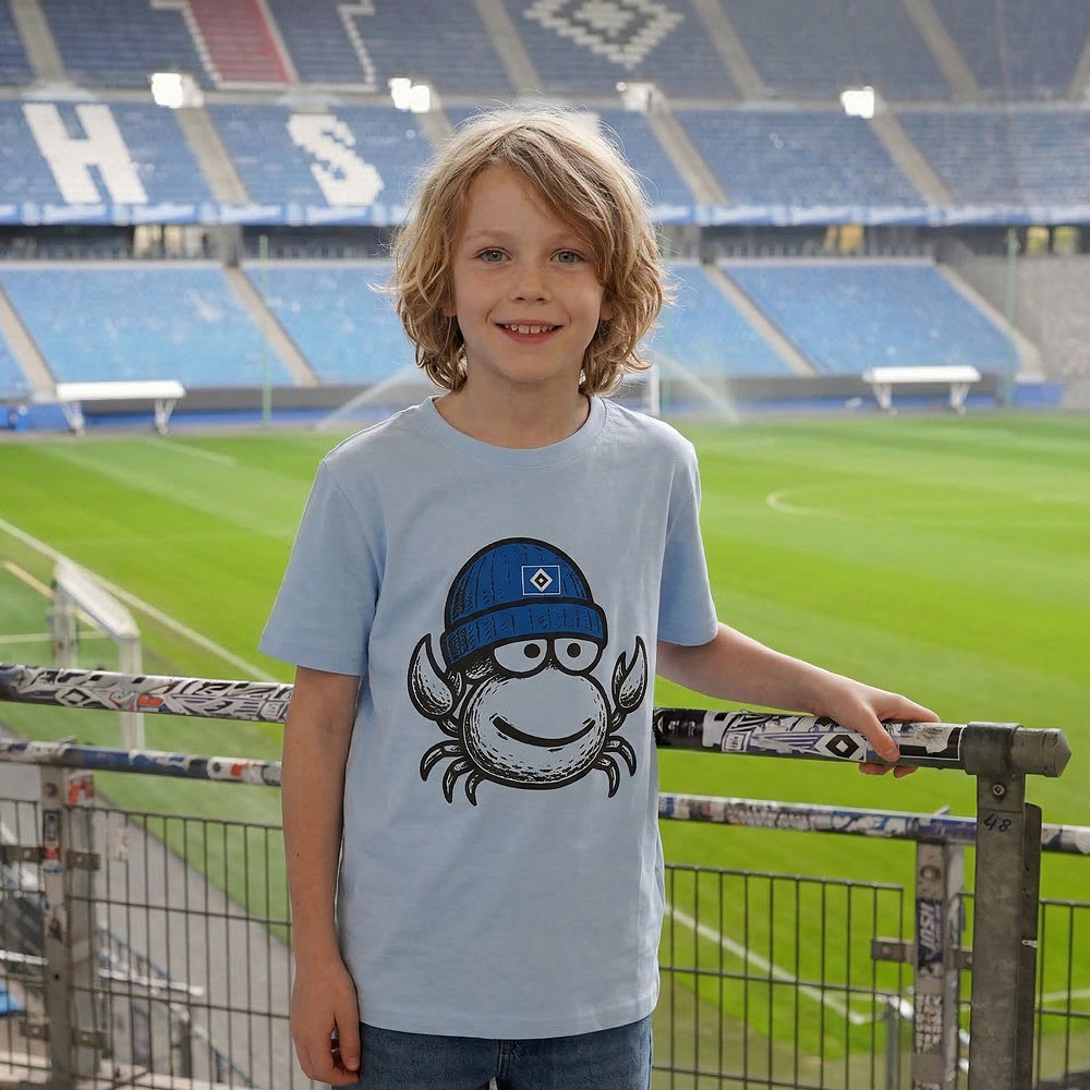 Das hellblaue Kinder Shirt „Tamino“ mit einem putzigen Krebs auf der Vorderseite macht dank der HSV-Raute sofort jedem klar, für welchen Verein dein Herz schlägt. Egal ob im Stadion, auf dem Spielplatz oder zu Hause - dieses Kinder T-Shirt vom HSV ist der perfekte Begleiter für junge Fans, die ihre Verbundenheit zu ihrem Team zeigen möchten.