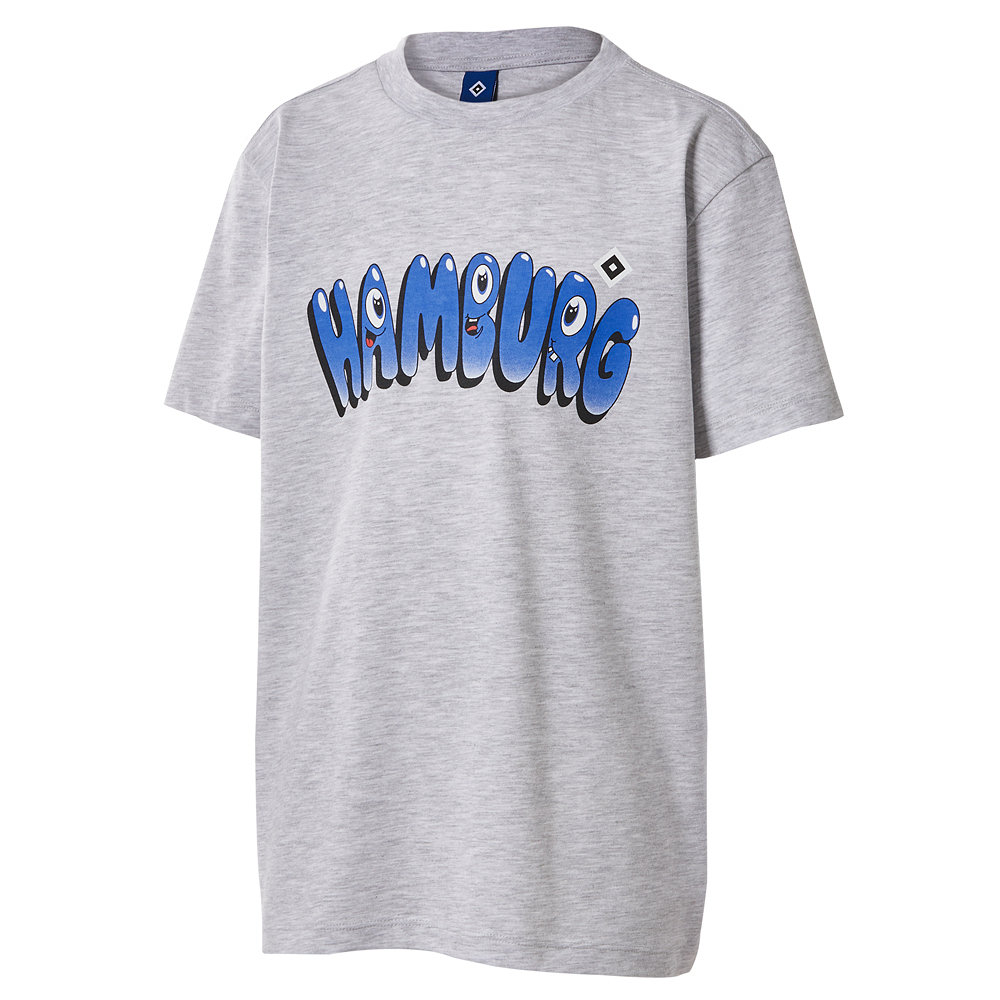 Das graue Kinder Shirt „Victor“ vom HSV mit Hamburg-Schriftzug und HSV-Raute auf der Vorderseite ist perfekt, um deine Liebe zum Verein auf dem Schulhof und in der Freizeit jeden Tag zu zeigen.